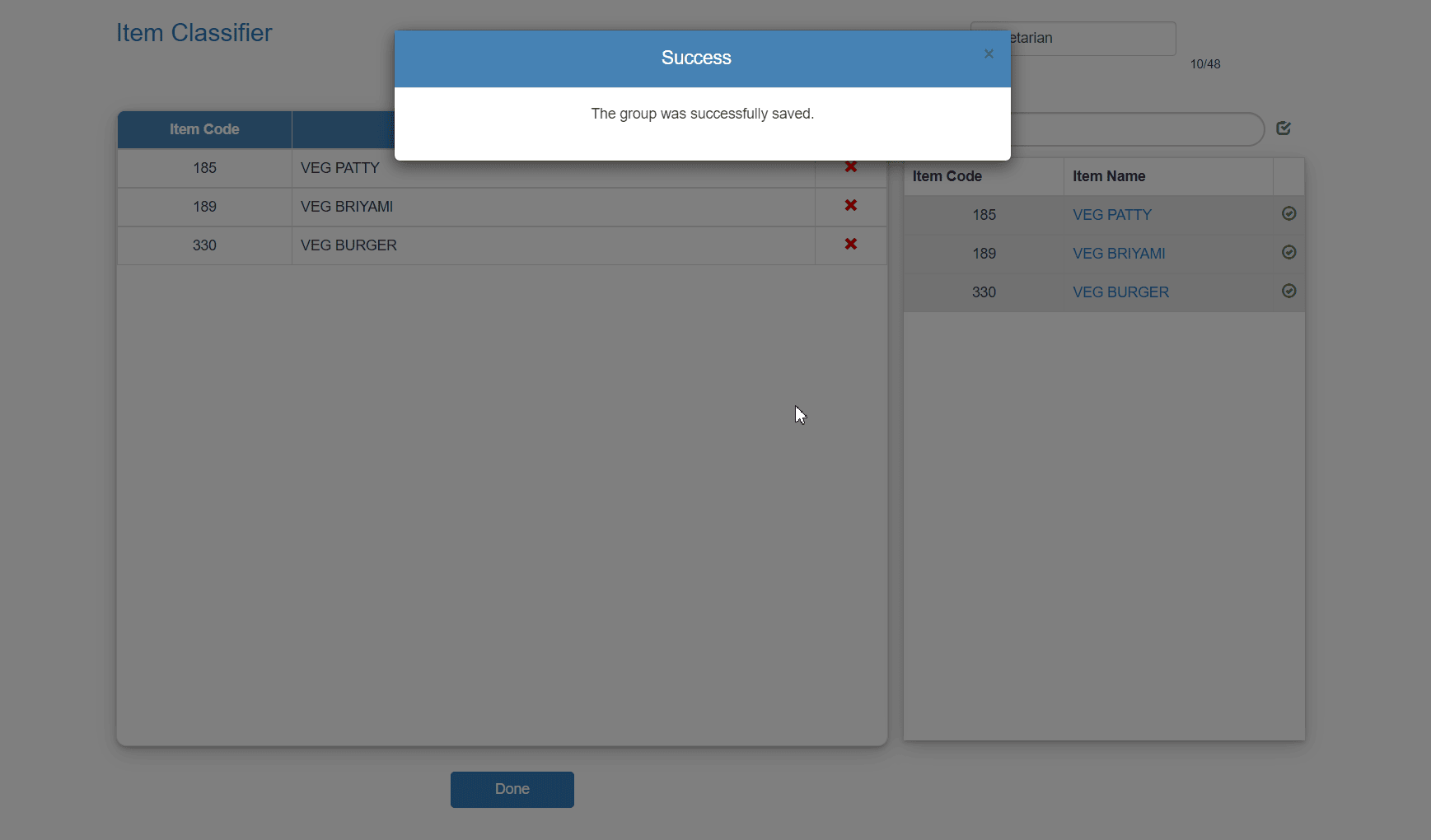 Click the View button to display the list of available Item Classifier Masters in the outlet POS.