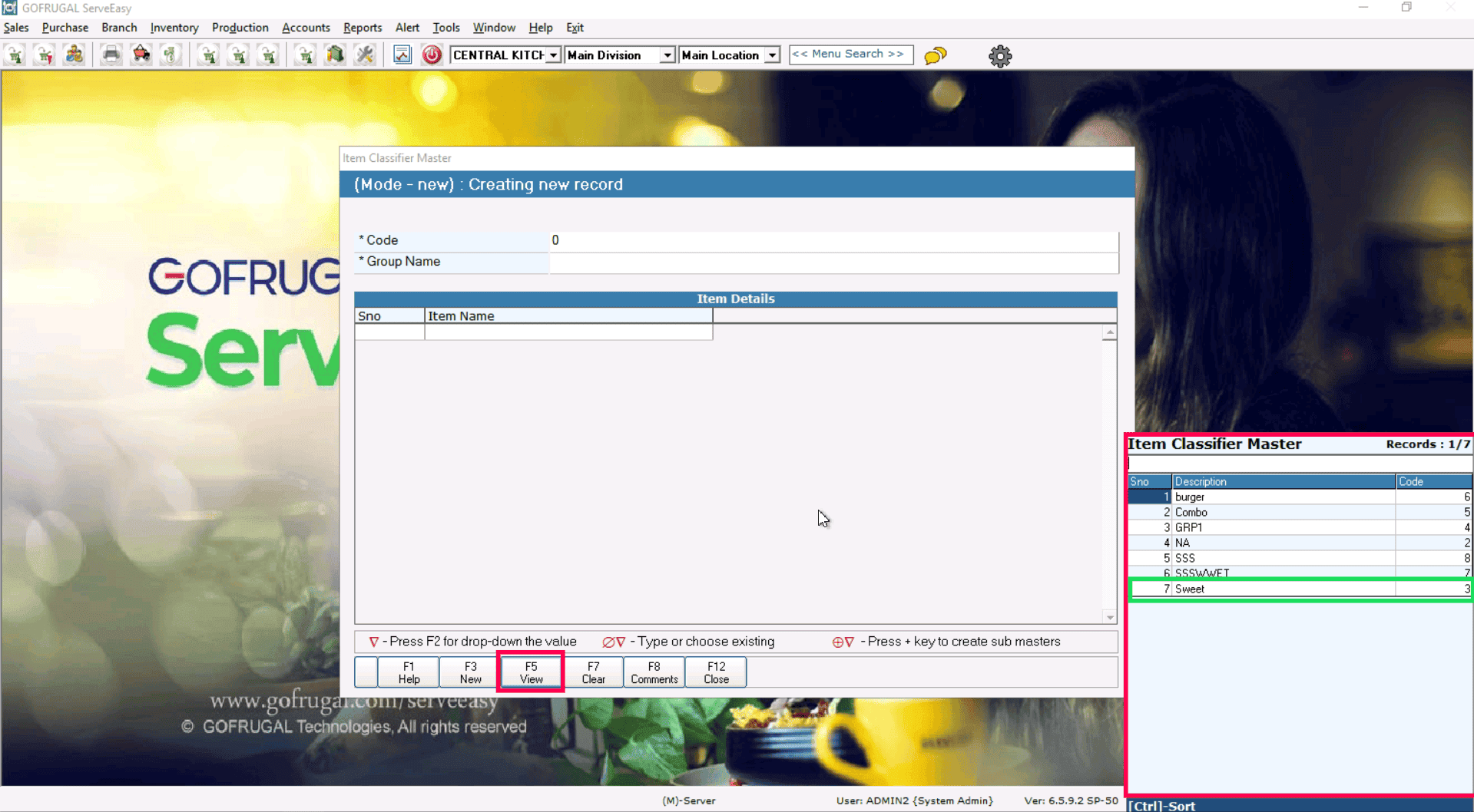 Navigate to Sales > Masters > Modifier/Classifier > Item Classifier.