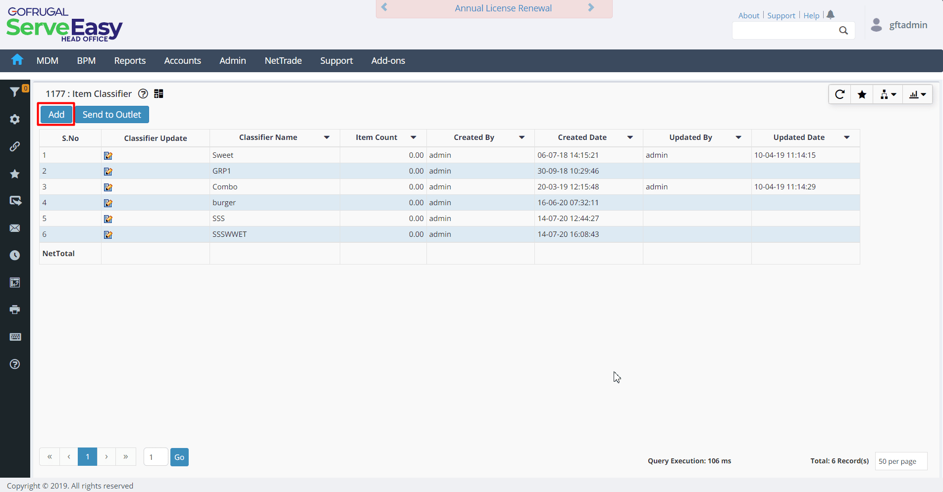 The Item Classifier Master in Gofrugal HQ allows Head Office (HQ) to create and manage classifier master's centrally and distribute them to all or selected outlets.
