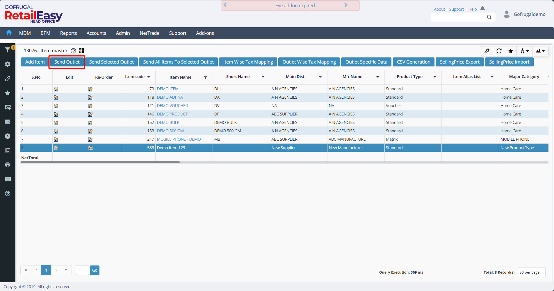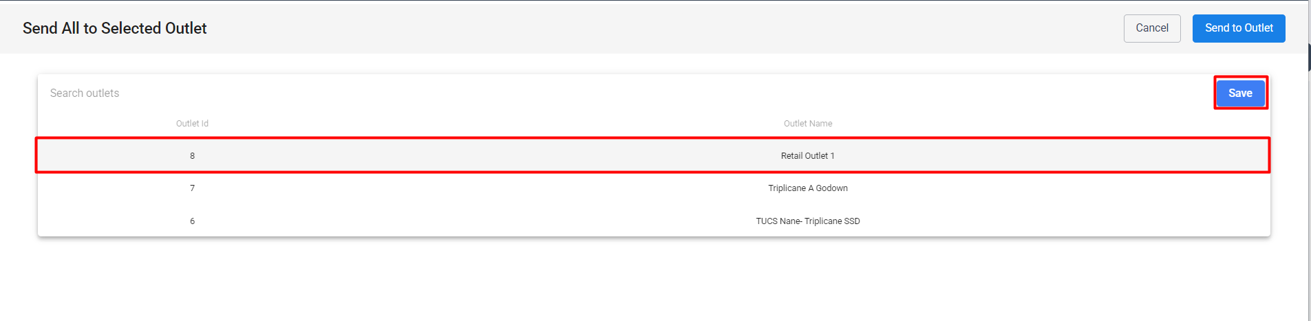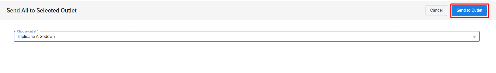 Send All Items To Selected Outlet: Clicking this button allows us to send all the items to chosen outlets.