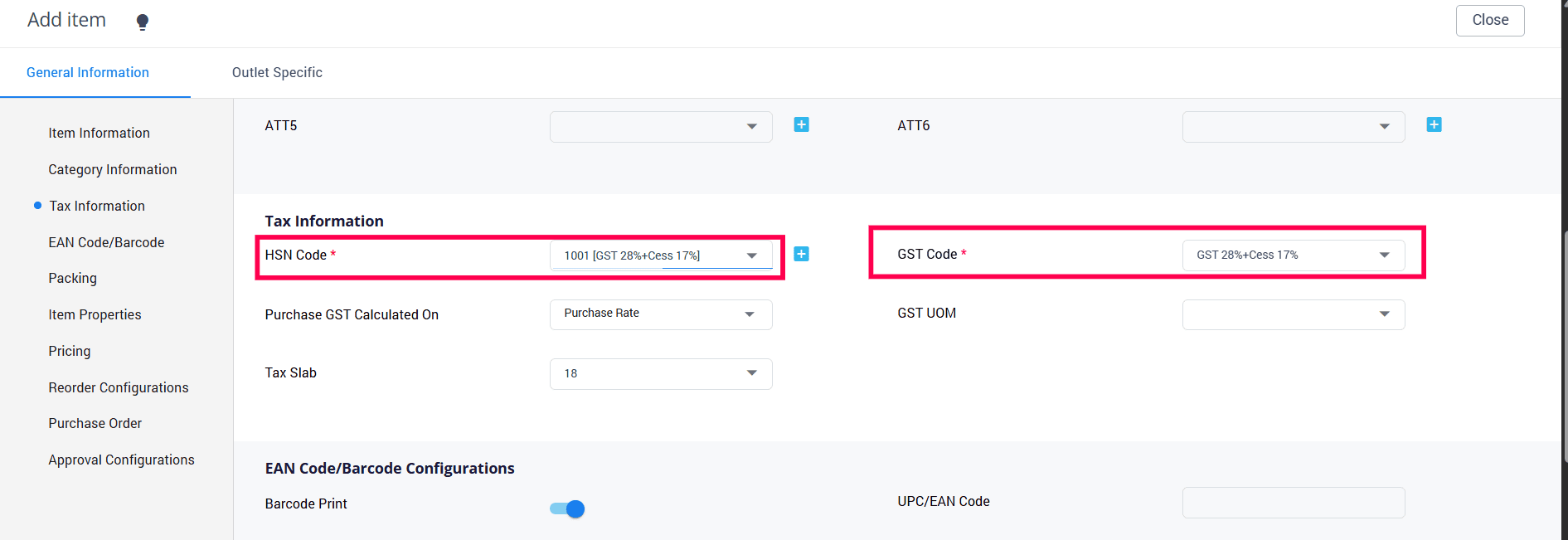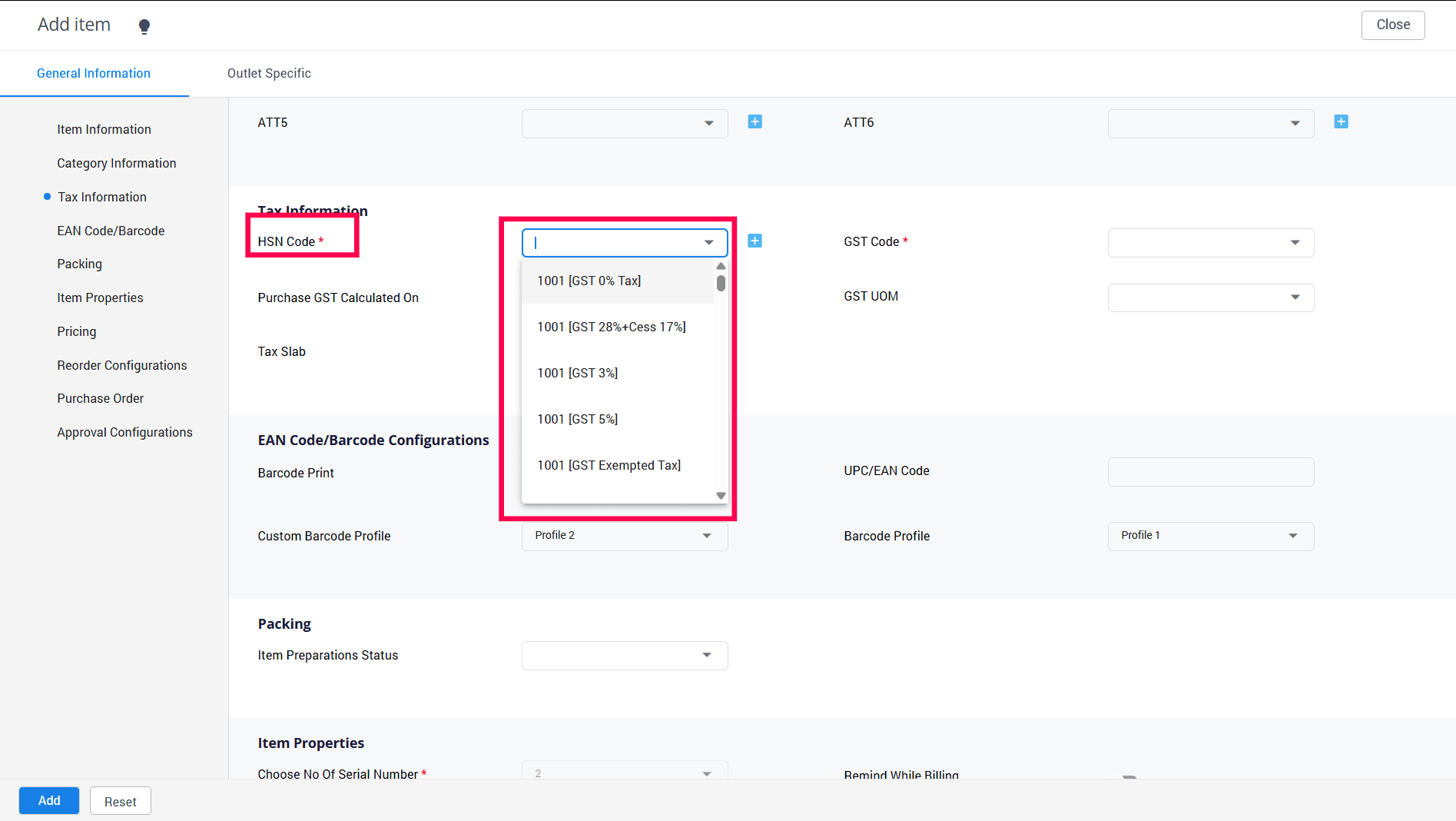 When you choose the HSN code, the GST Code gets auto-populated.