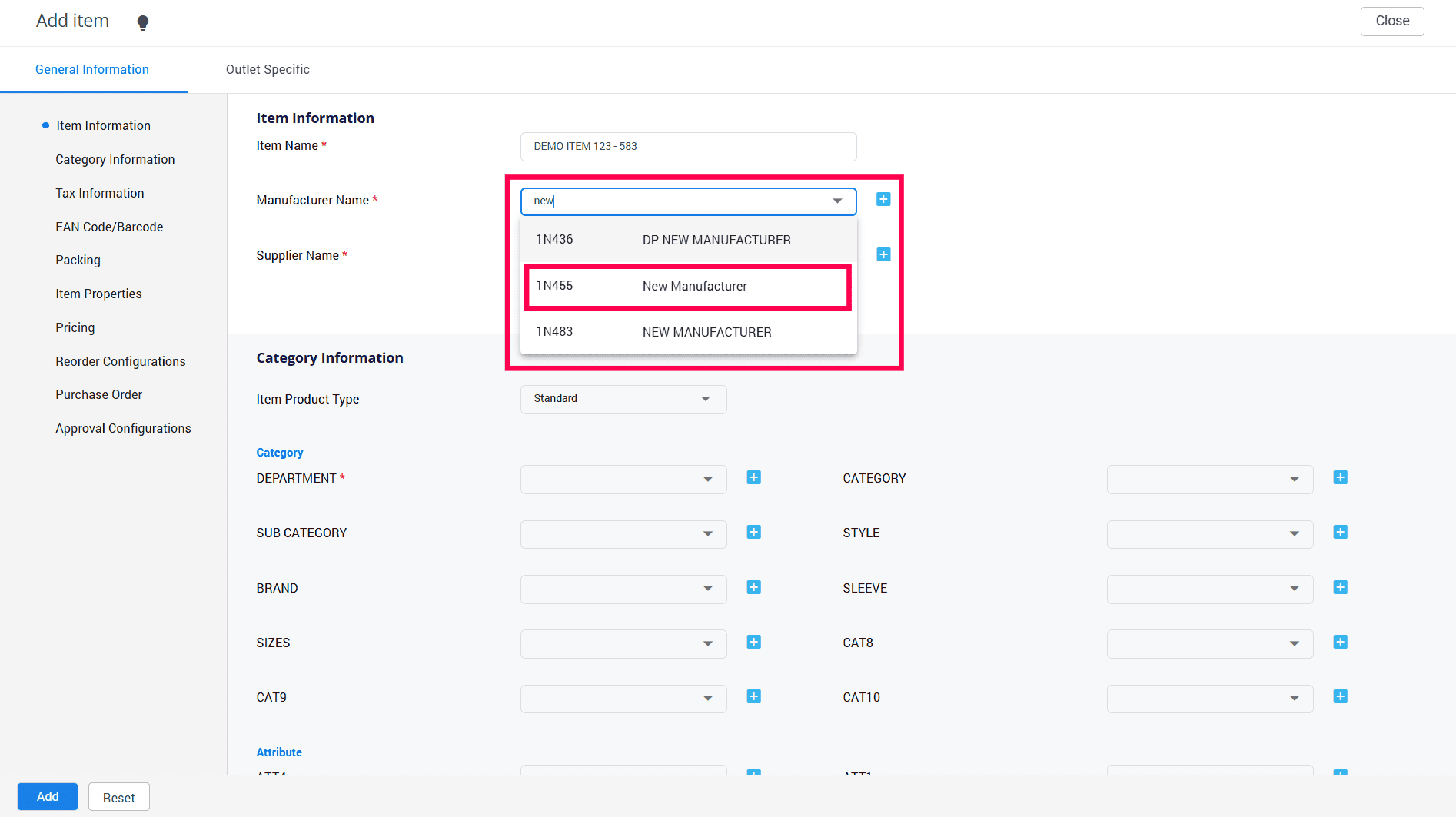 Click here for the steps to create a new manufacturer name.