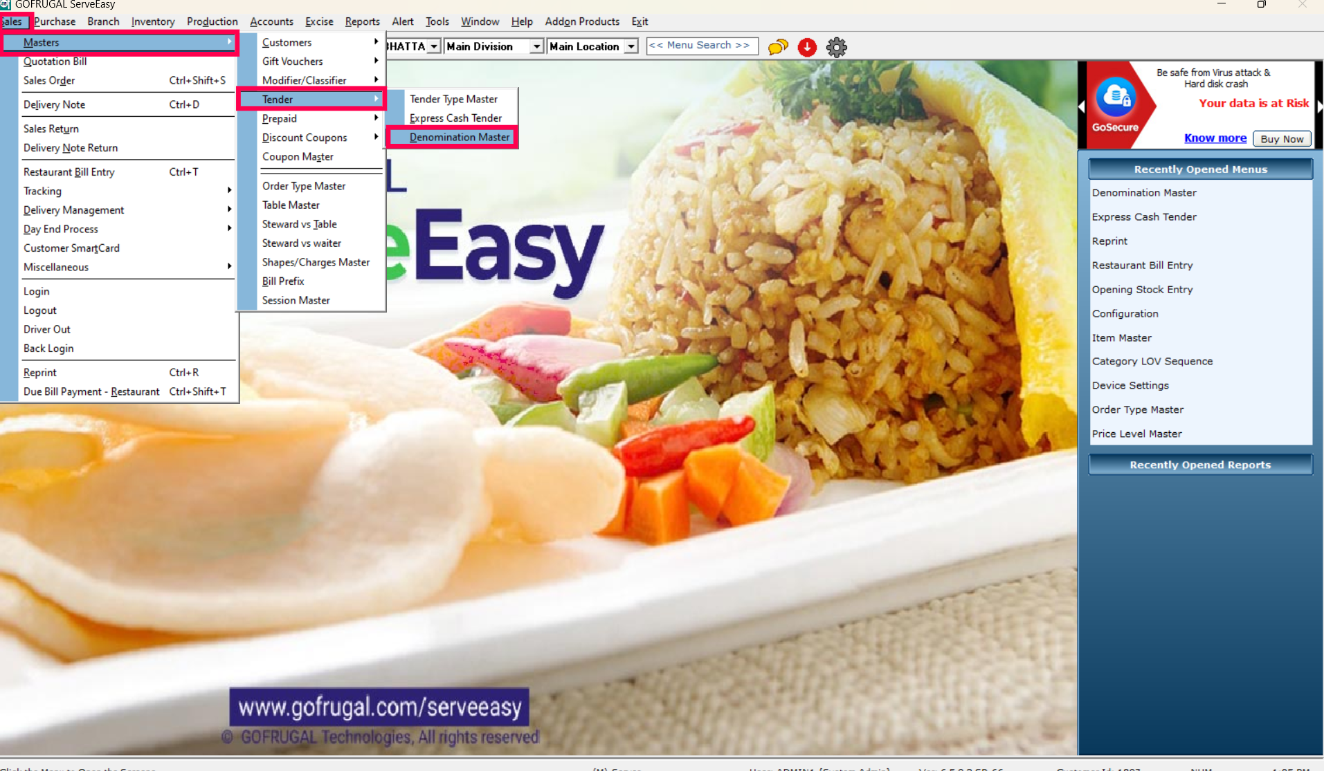 Navigate to Sales > Masters > Tender > Denomination Master.