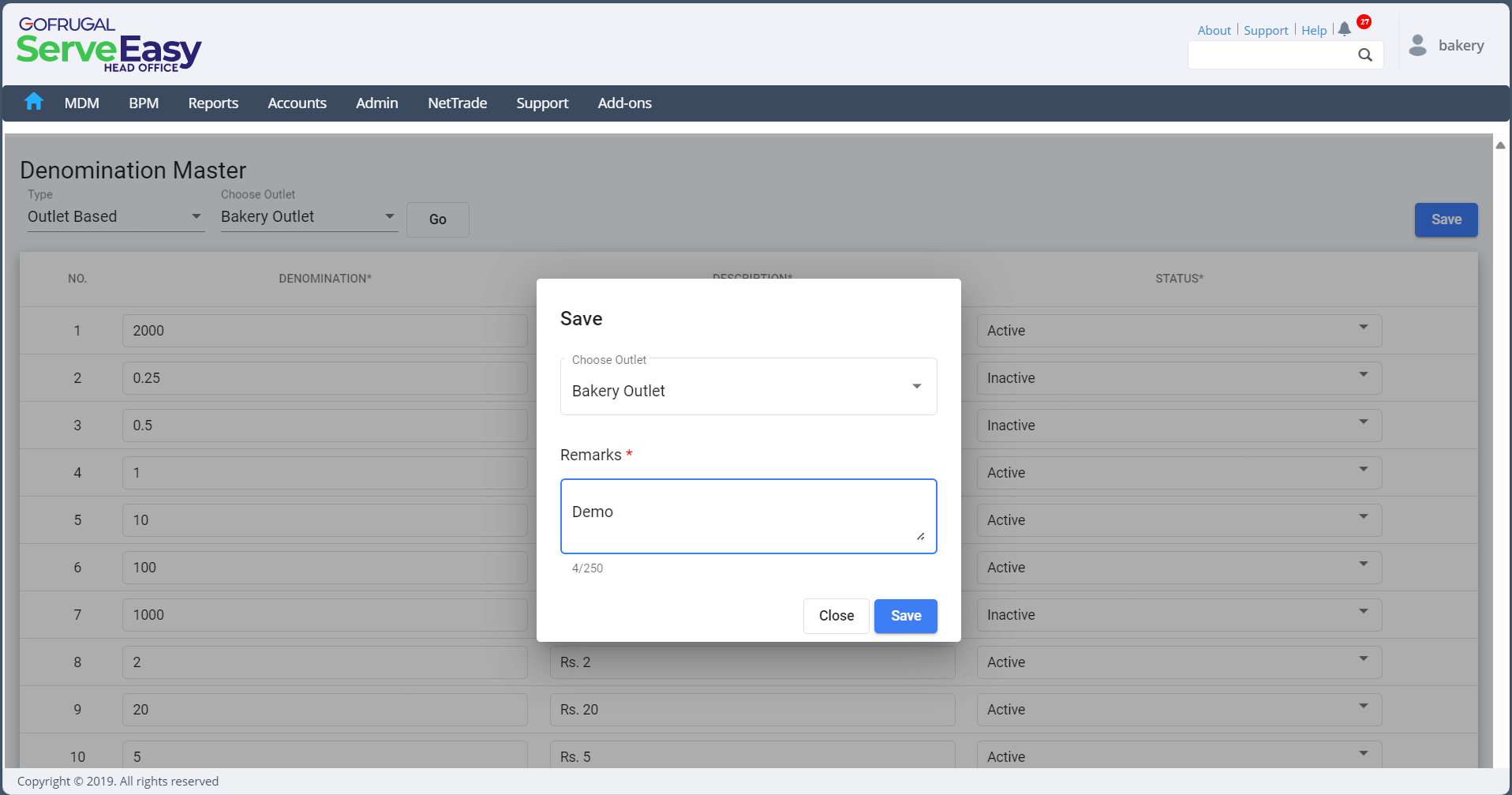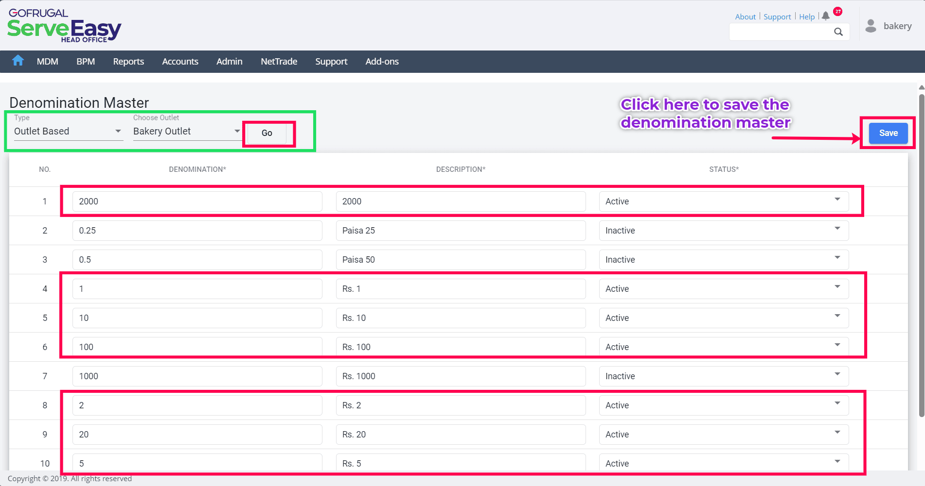 Gofrugal HQ Cash Denominations Master is a feature within the Master Data Management (MDM) module that allows you to define and manage the different denominations of cash that your business accepts or uses. This master data is crucial for various financial and operational tasks, including: