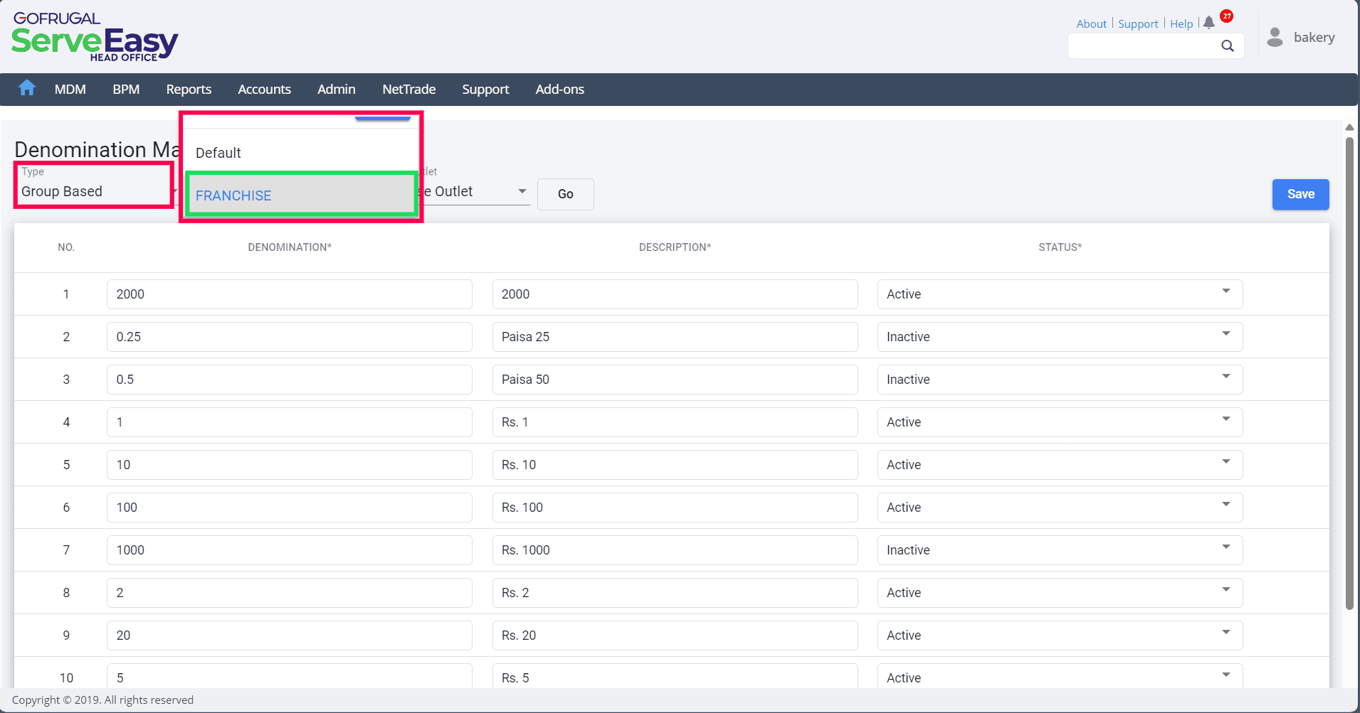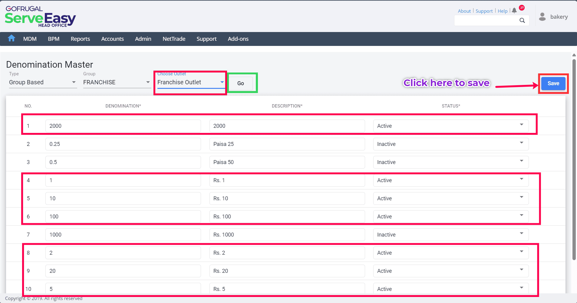 Once you’ve saved the denominations, they’ll be sent out from HQ to the outlets automatically.