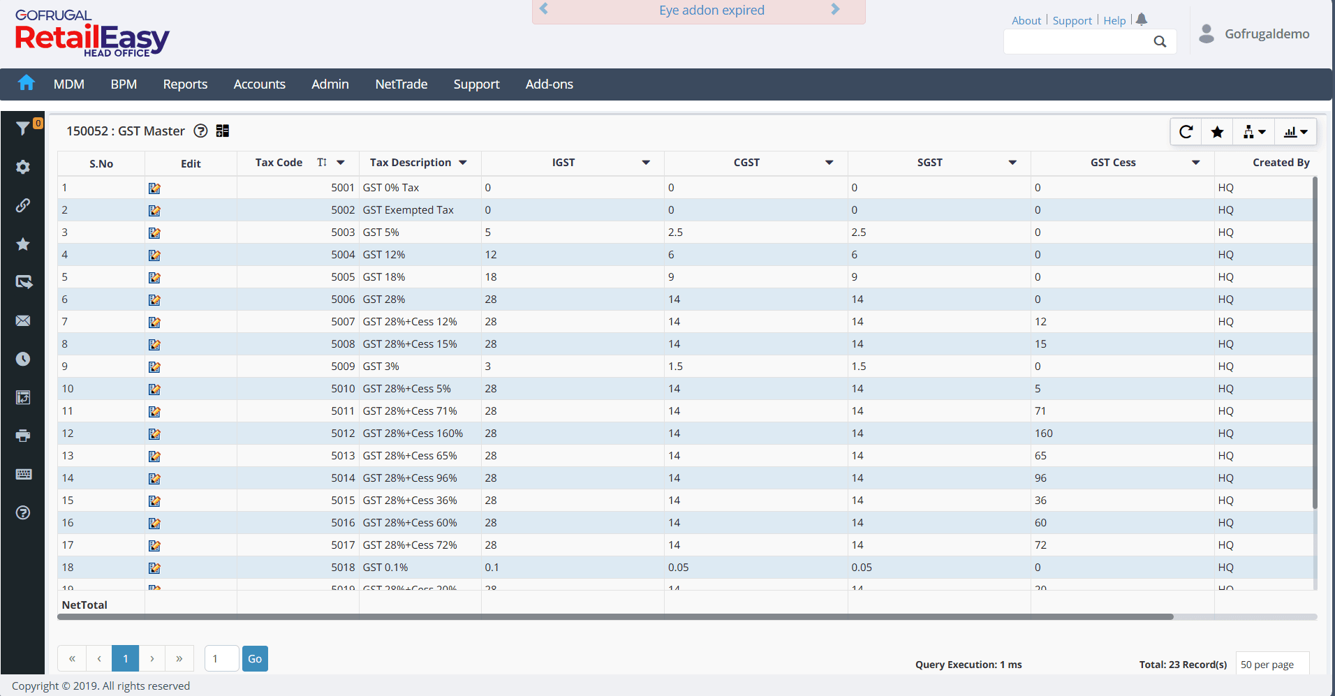 Managing HSN Master in HQ: HSN Masters can be managed in HQ is very easy. As we are creating item masters in HQ, it is necessary to create the HSN masters in HQ. Below are the steps to create and manage HSN Masters in HQ: Step 1: Go to MDM > Tax ...