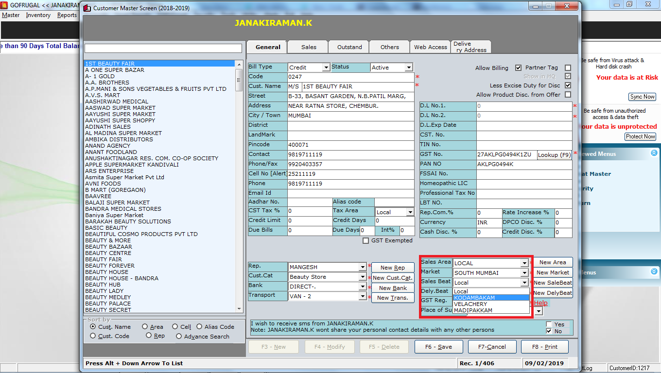 IV. map the Market beat/sales beat in customer master.