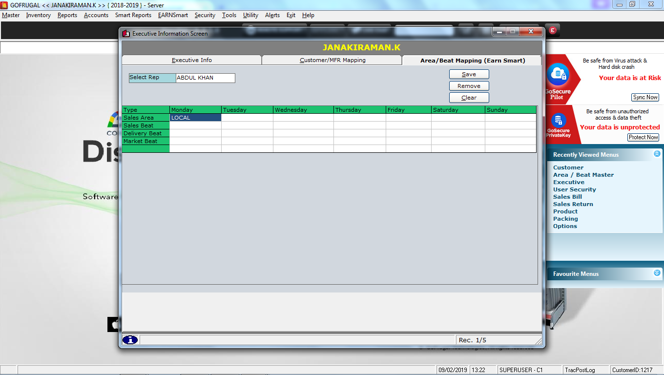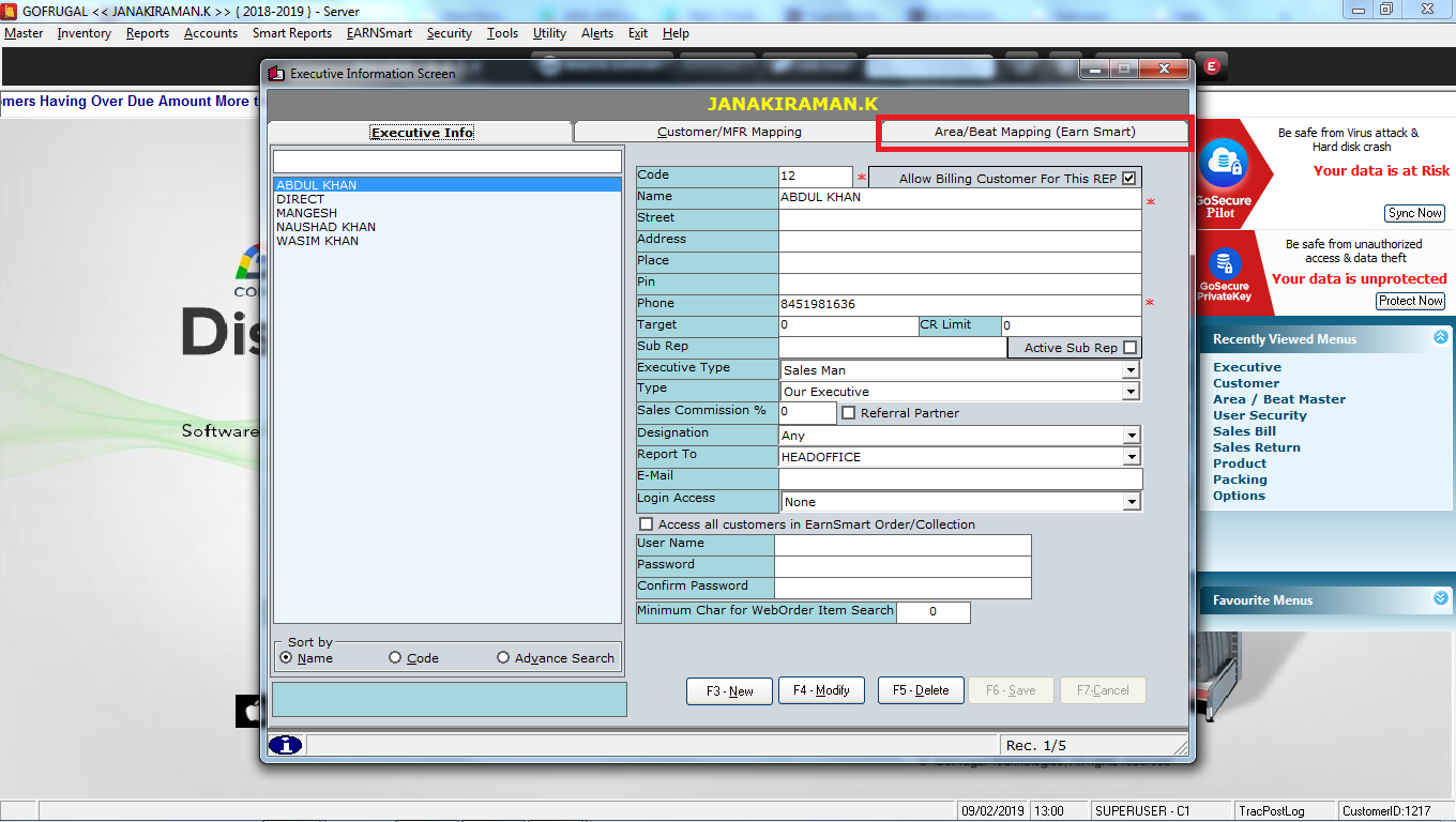 VII.Now after enabling this option we will get area/beat mapping window in Executive master.