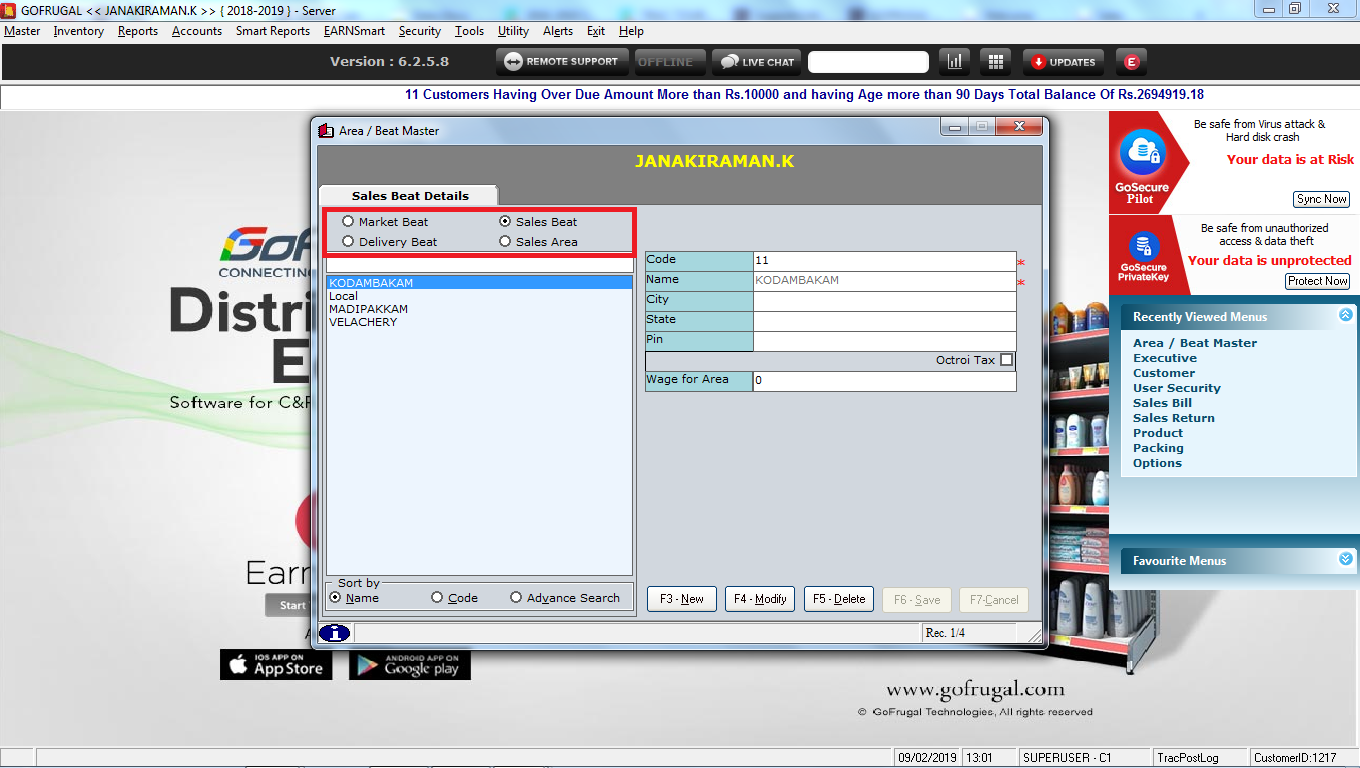 III. first, we need to create a market beat, sales beat in area/beat master.