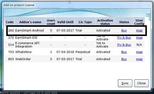 3.Now Click "Try and buy" near Earnsmart Android. It will activate the 30 days trial license.