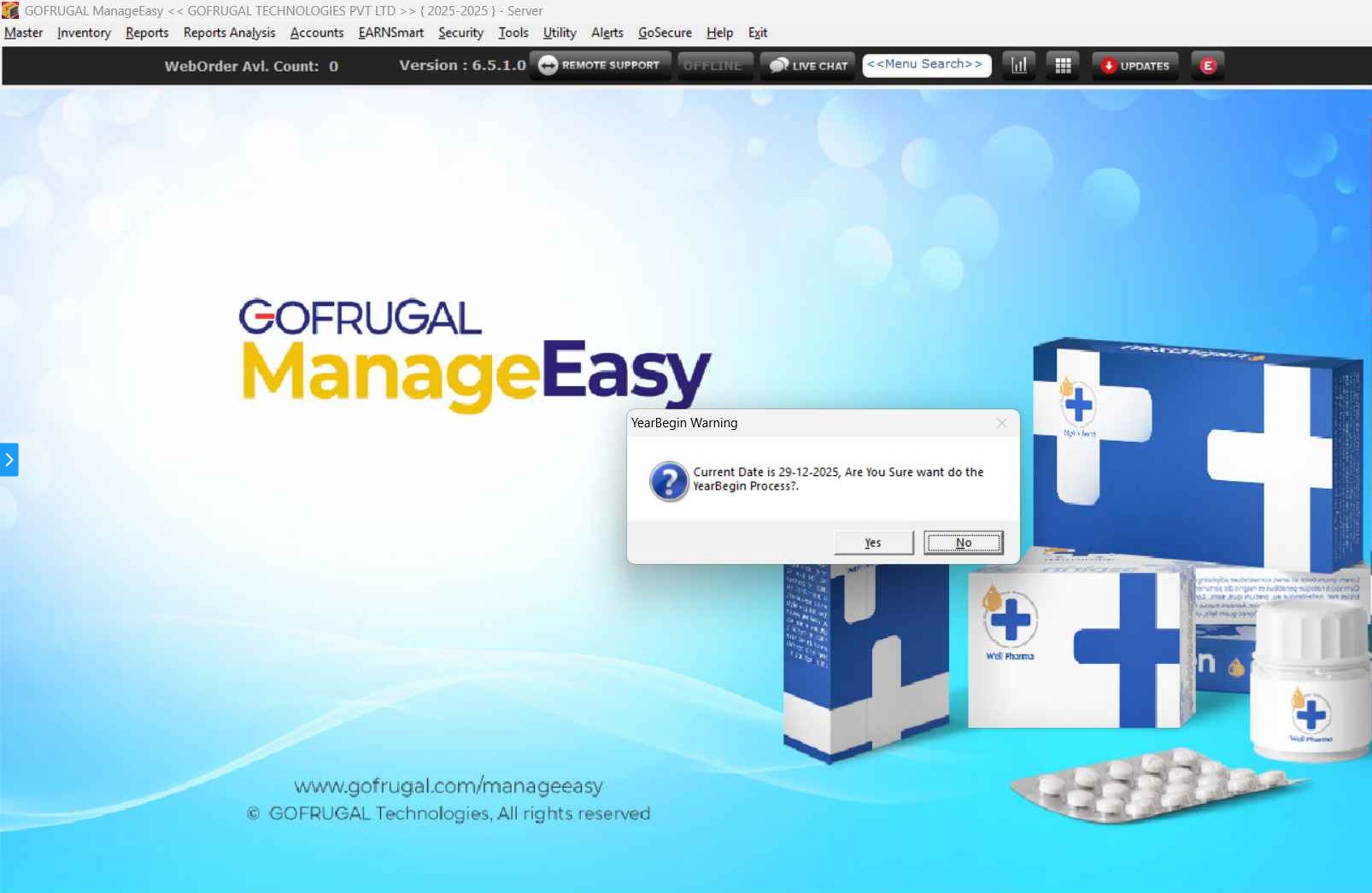 Before doing the Year Begin process in AccountsEasy for the Financial year JAN 2026 - DEC 2026, It is mandatory to compete the Year Begin process in ManageEasy application.