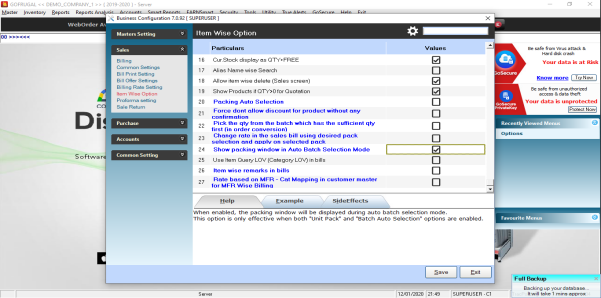 Step: 2 In Sales under item wise option enable the option called show packing window in Auto Batch Selection Mode (Option number 24)