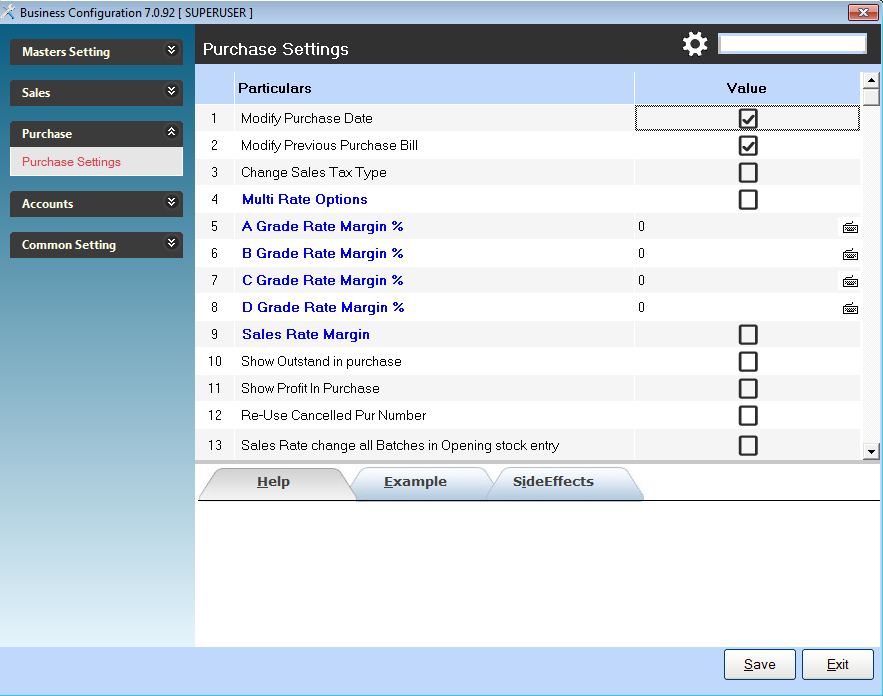 Purchase Entry Configurations
