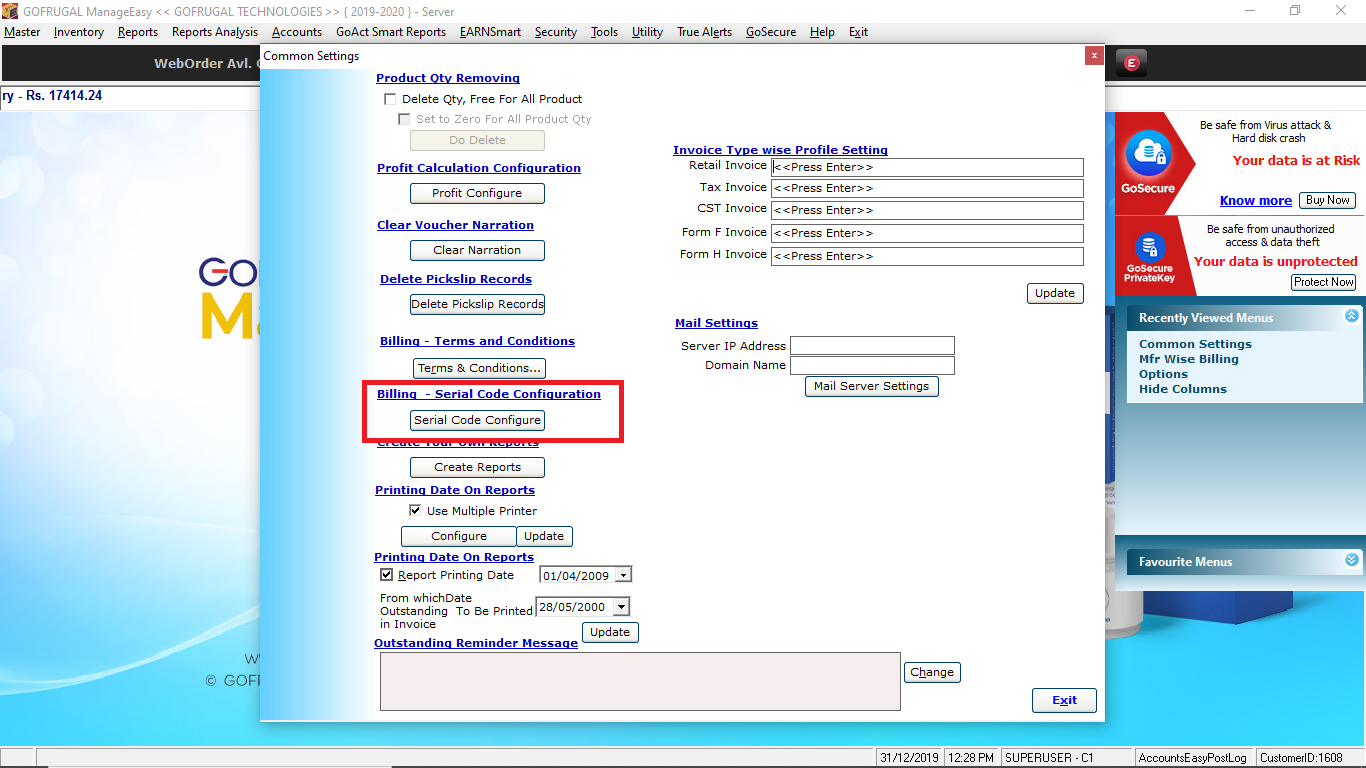 Step 2 : Go to Tools>Options>Common settings and click on "Serial Code Configure".