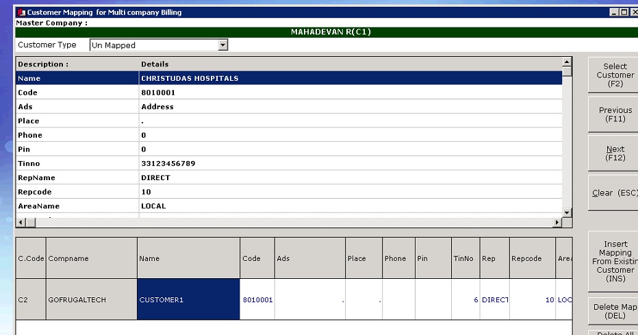 12. Press Ins Key to select the slave company customer and choose any one customer. It will automatically map the customer with the master company and slave company.
