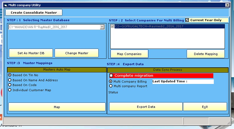14. Select Complete Migration and select multi-company export in STEP: 4 in this screen.