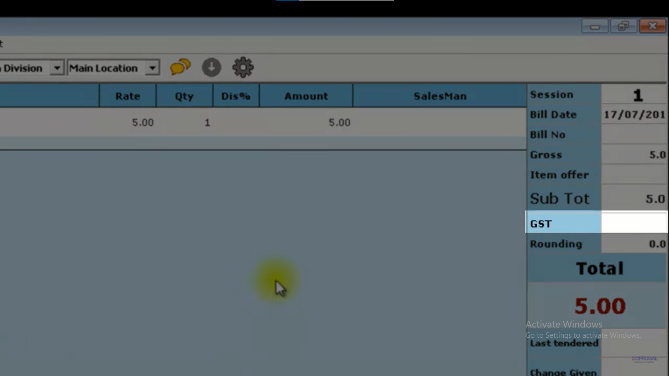 Step 4: If you choose a product, you'll see that the GST amount for this billing transaction is empty in the sales bill screen.