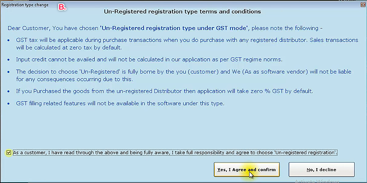 Using this method, you can unregister from GST tax filling, and if you want to change to registered GST, you should follow the same steps, selecting registered under registration type.