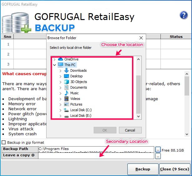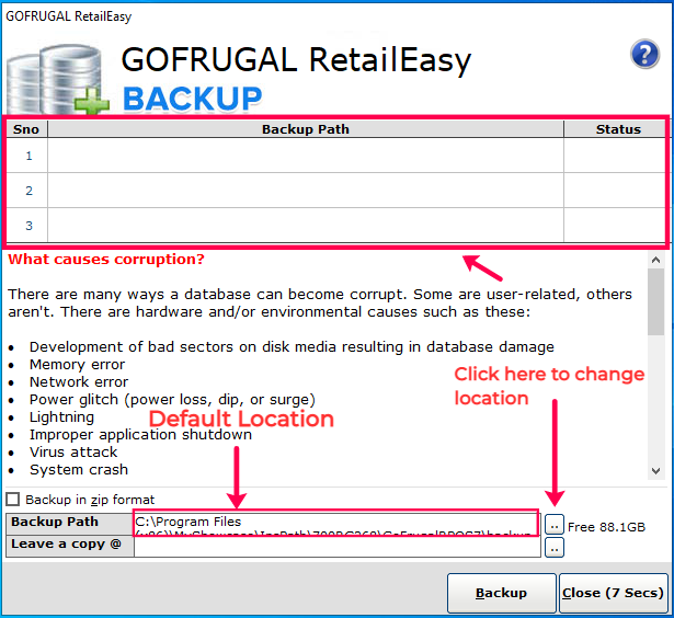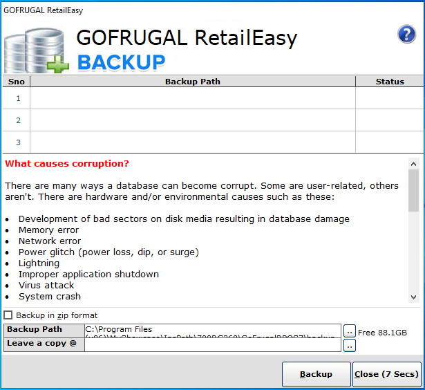 Step 1: Whenever you exit the RetailEasy software, it asks you for a backup via this context menu.