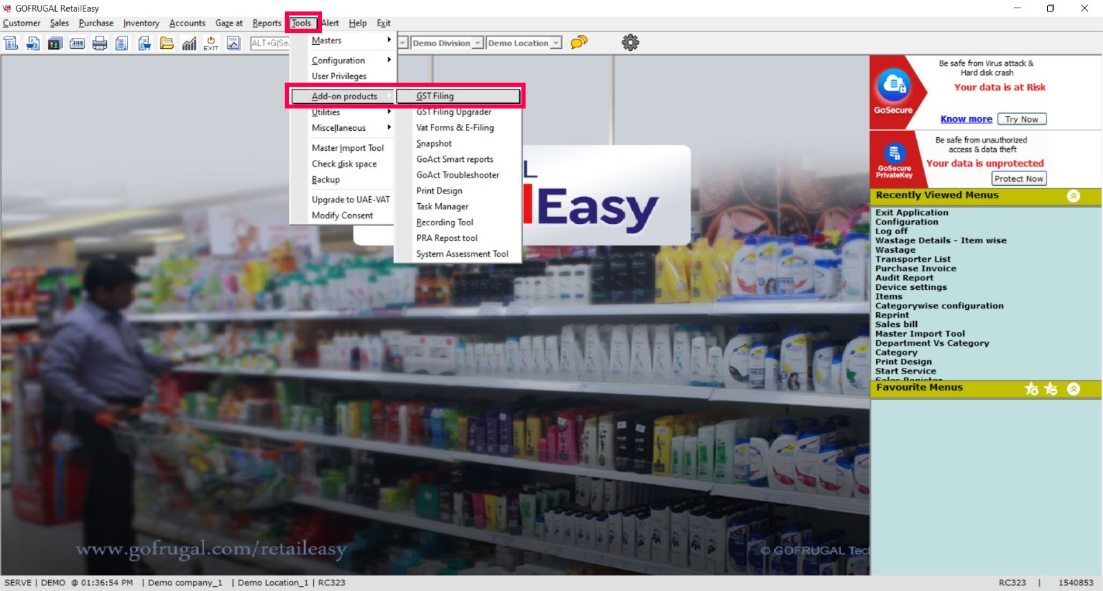 Step 1: Go to Tools > Add-on Products > GST Filing