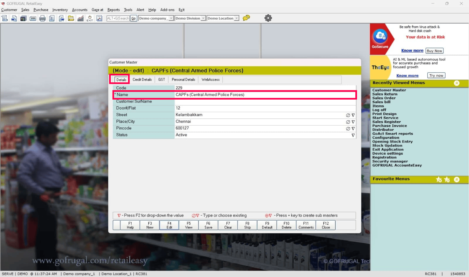 Step 2: Customer Master screen will appear. Fill in the details as: Central Armed Police Forces (CAPFs), Central Police Organisations, State Police Forces, and their families at Kendriya Police Kalyan Bhandars.