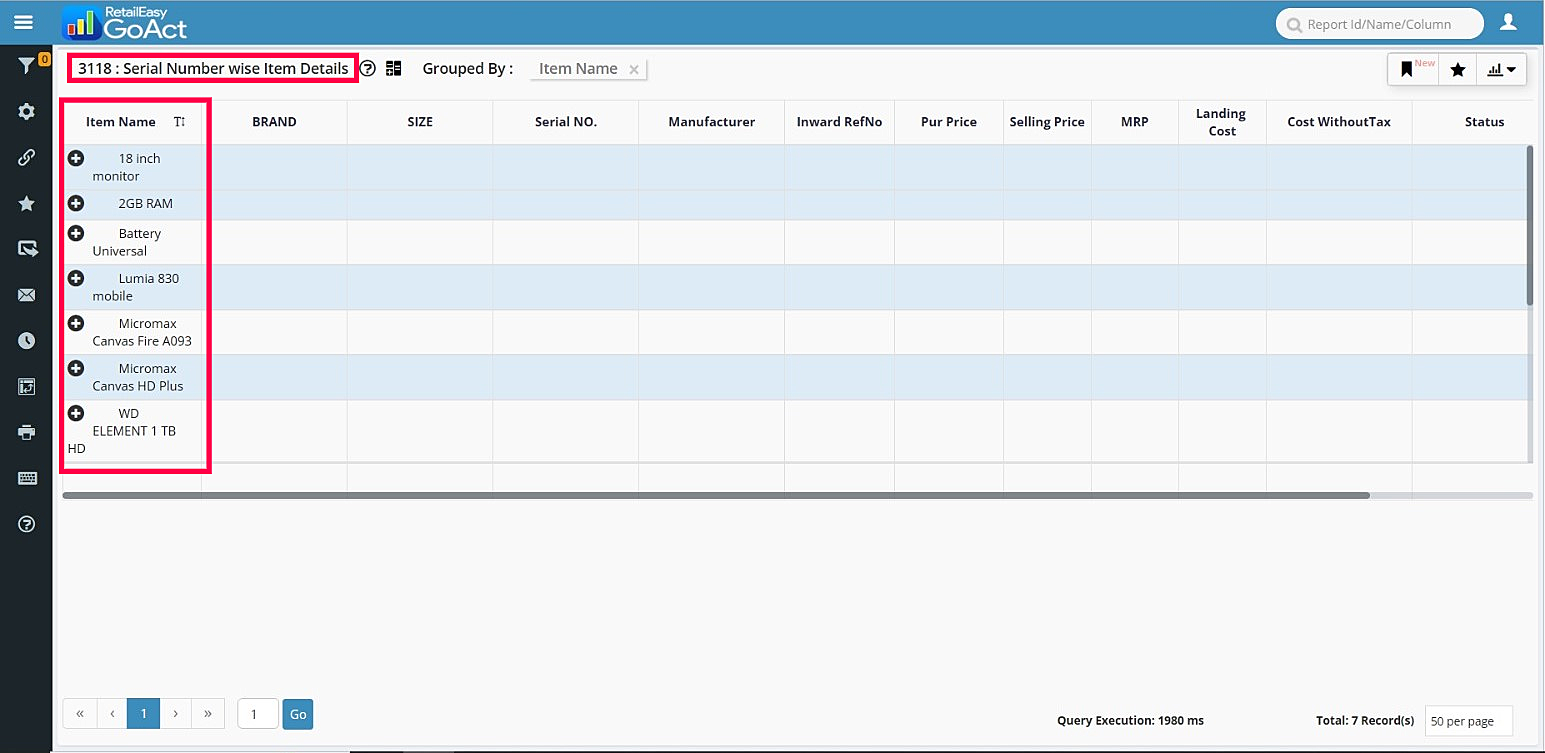 Step 2: Serial Number Wise Item Details screen will appear. List of Items will be displayed.