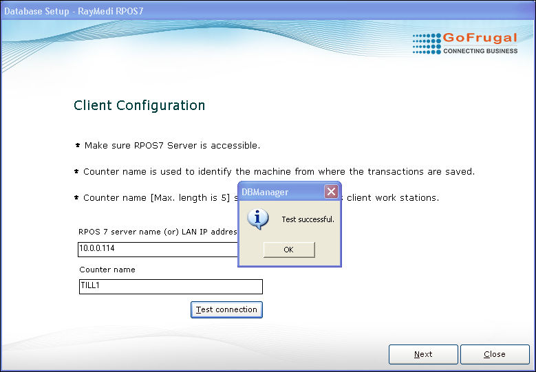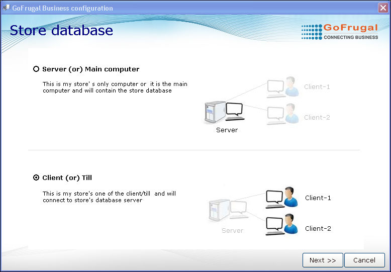 1. Select the option Client (or) Till. The client(s) will be connected to the store's database server.