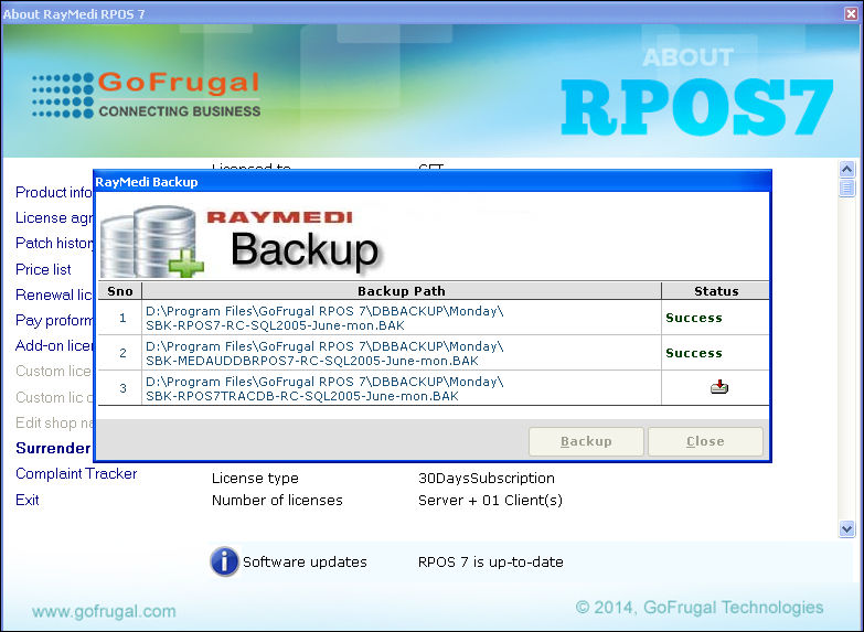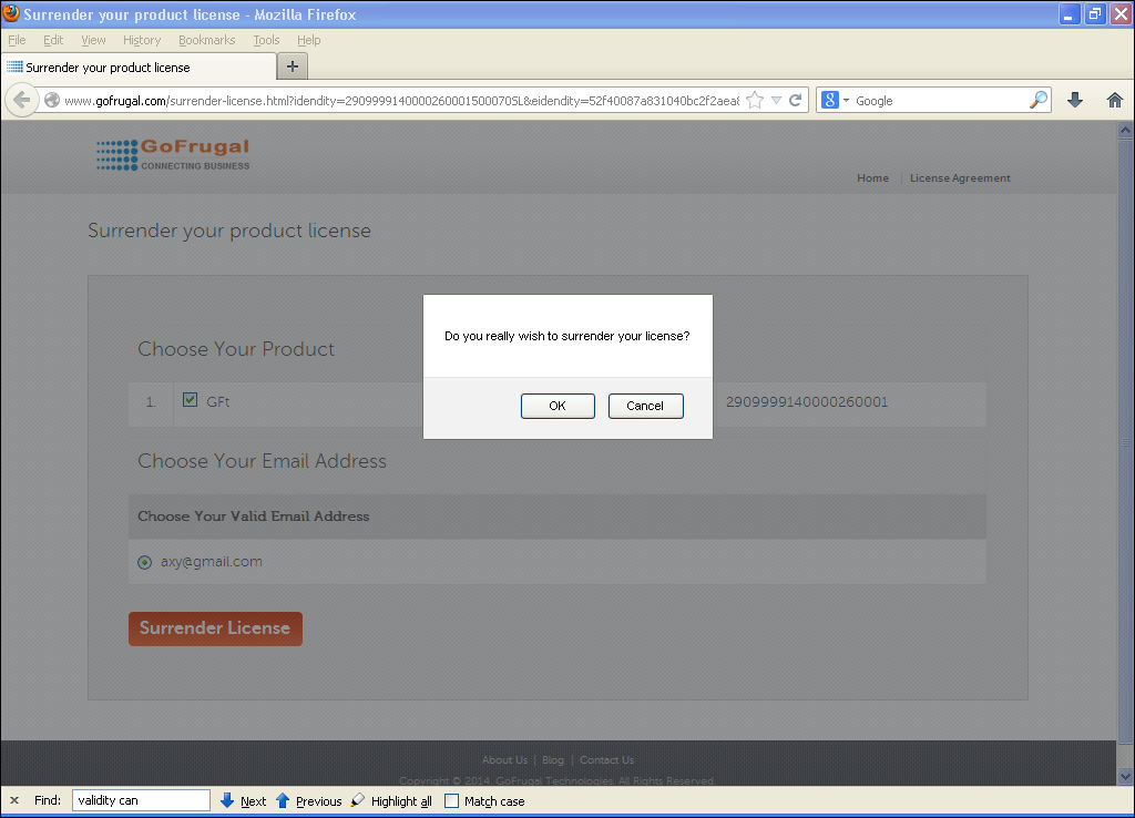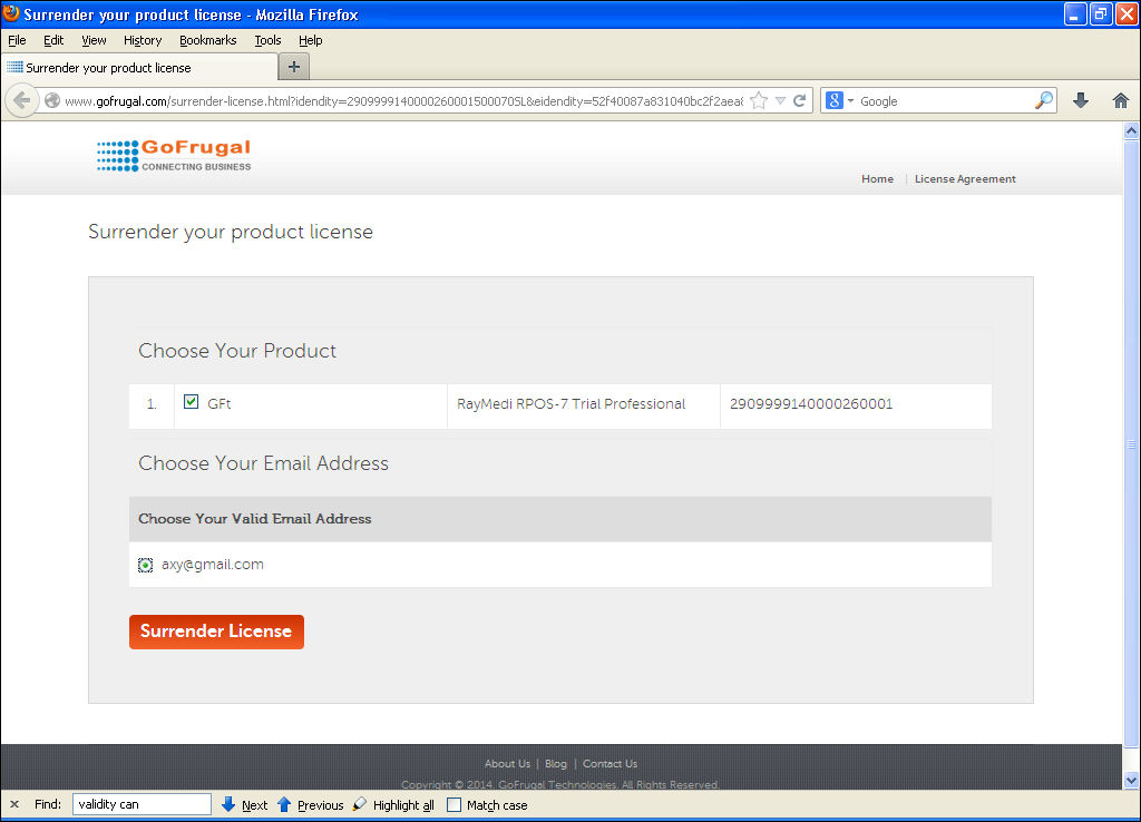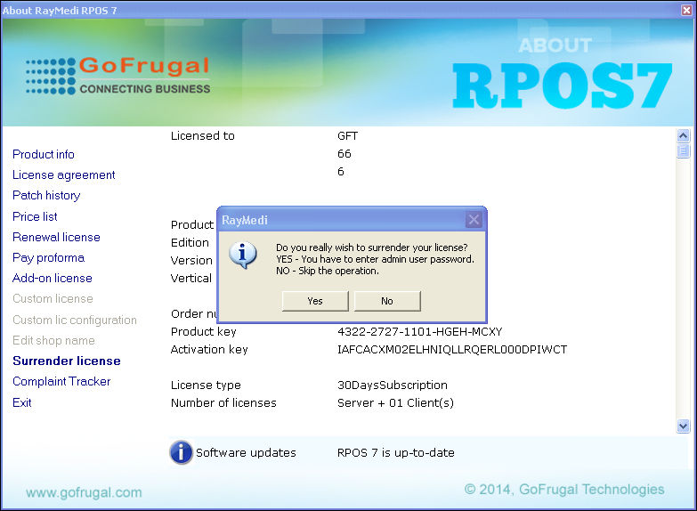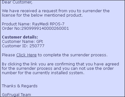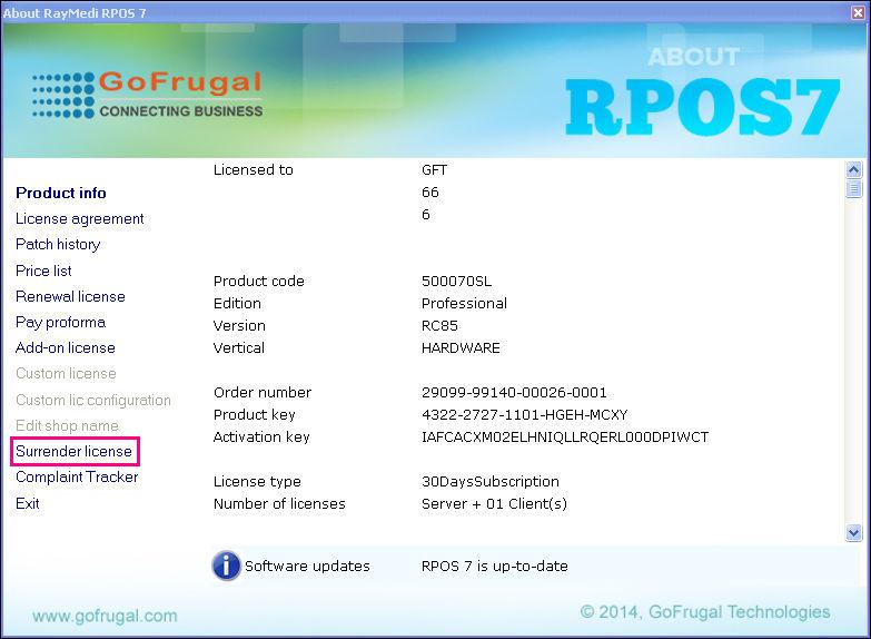 How to surrender the GOFRUGAL license?