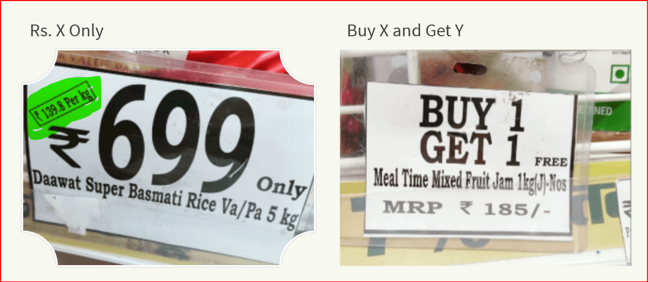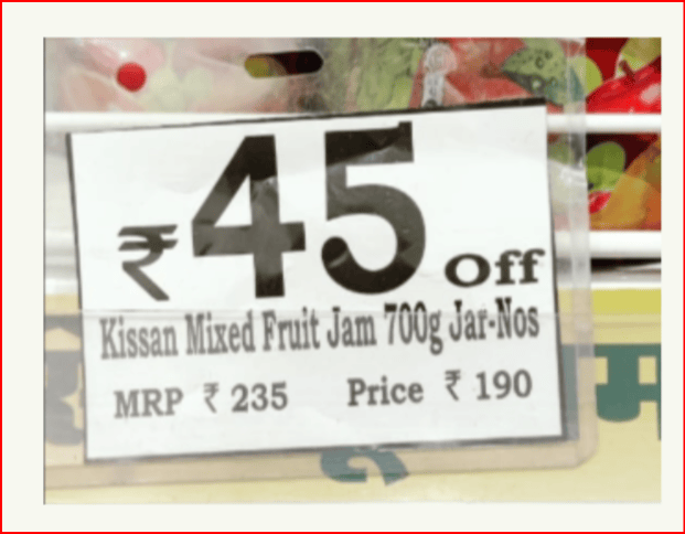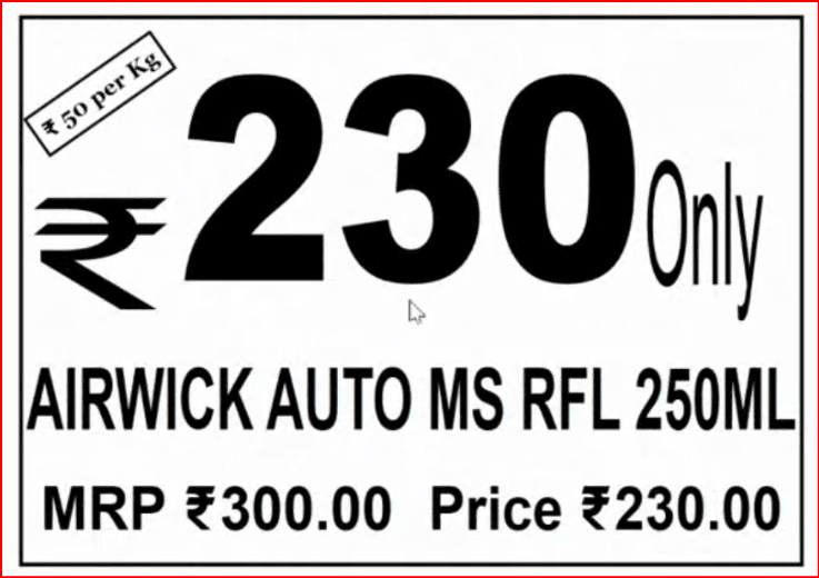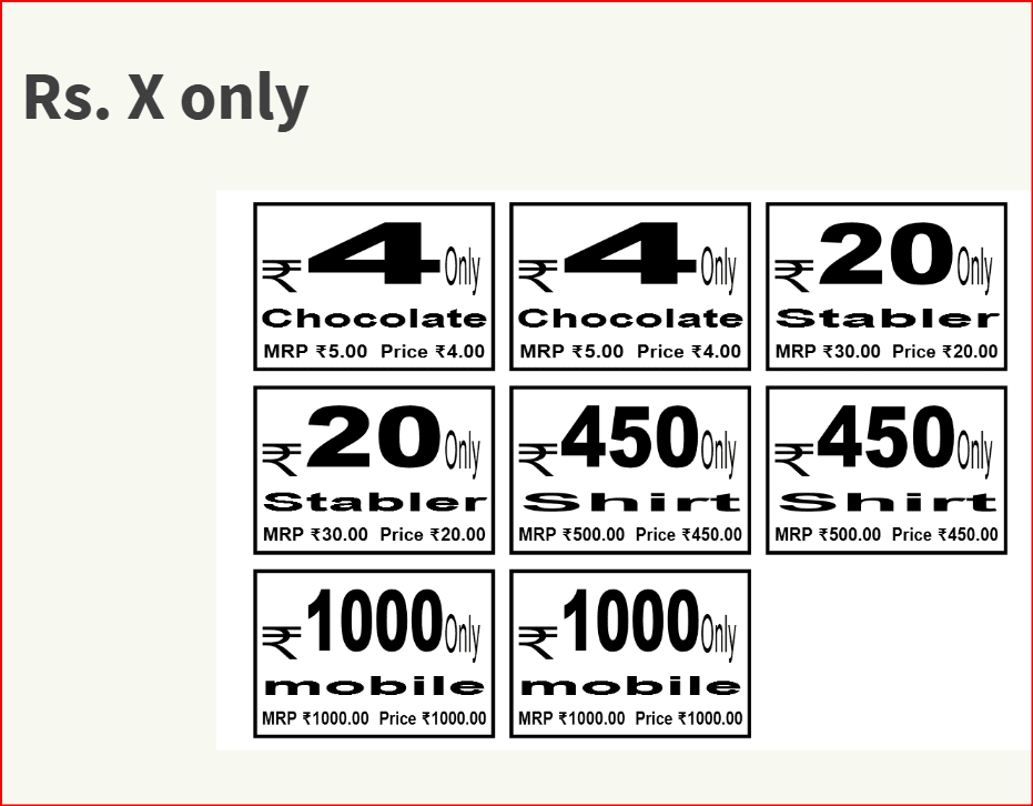Calculation Logic: Rs. <MRP – Selling Rate> Off