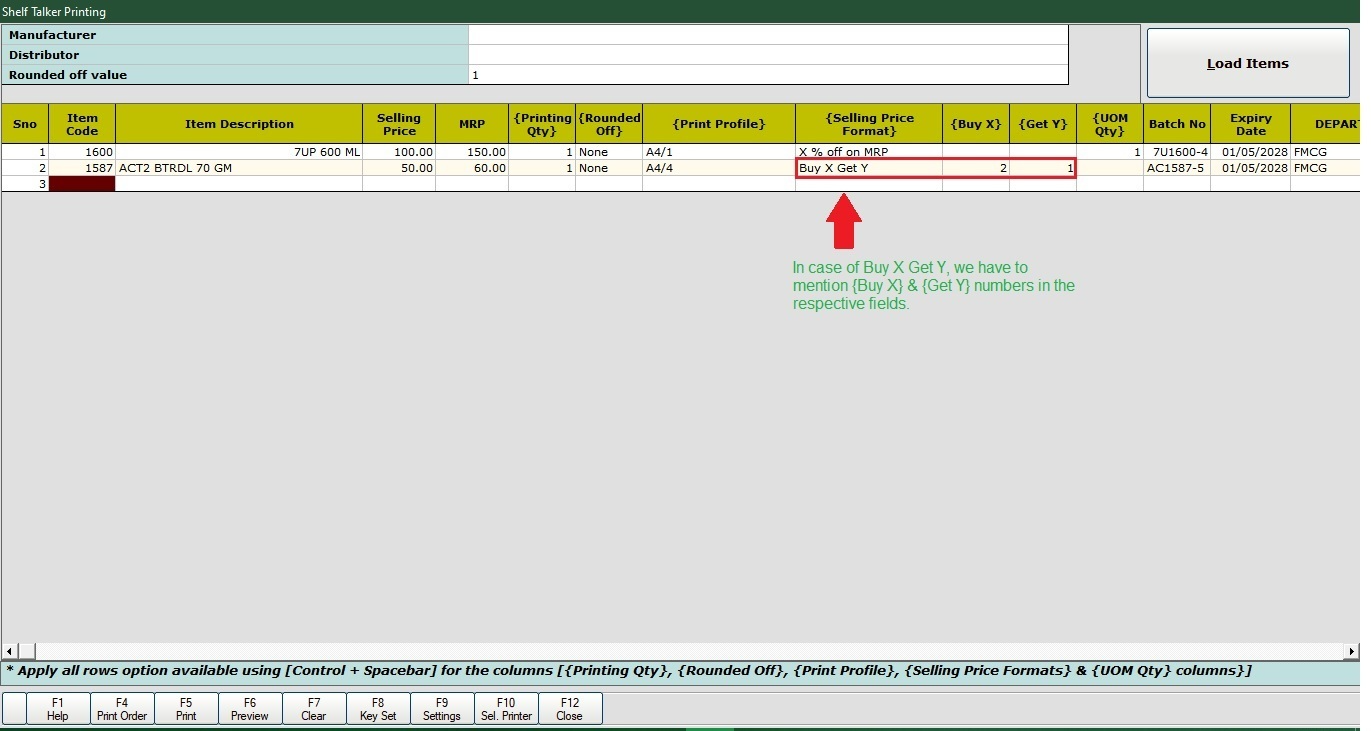 The system will display the latest item rate details along with Buy X Get Y offer information, based strictly on the configured X and Y values.