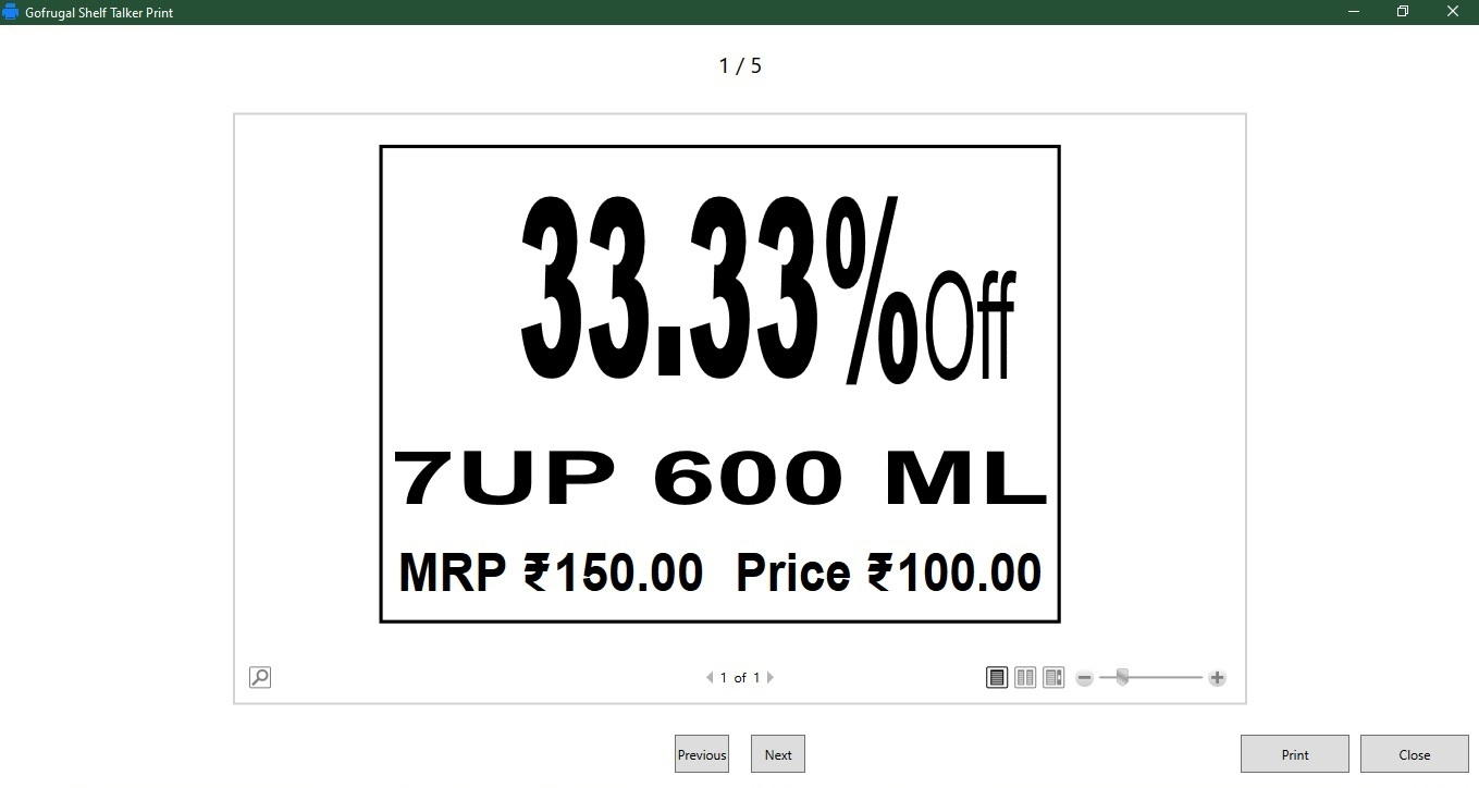 The Shelf Talker is a newly introduced feature that allows printing such labels on A4 sheets instead of stickers, helping reduce stationery costs and enabling larger, more visible fonts. This improves product visibility from a distance, attracts customer attention, and increases sales potential by effectively highlighting pricing and offers.