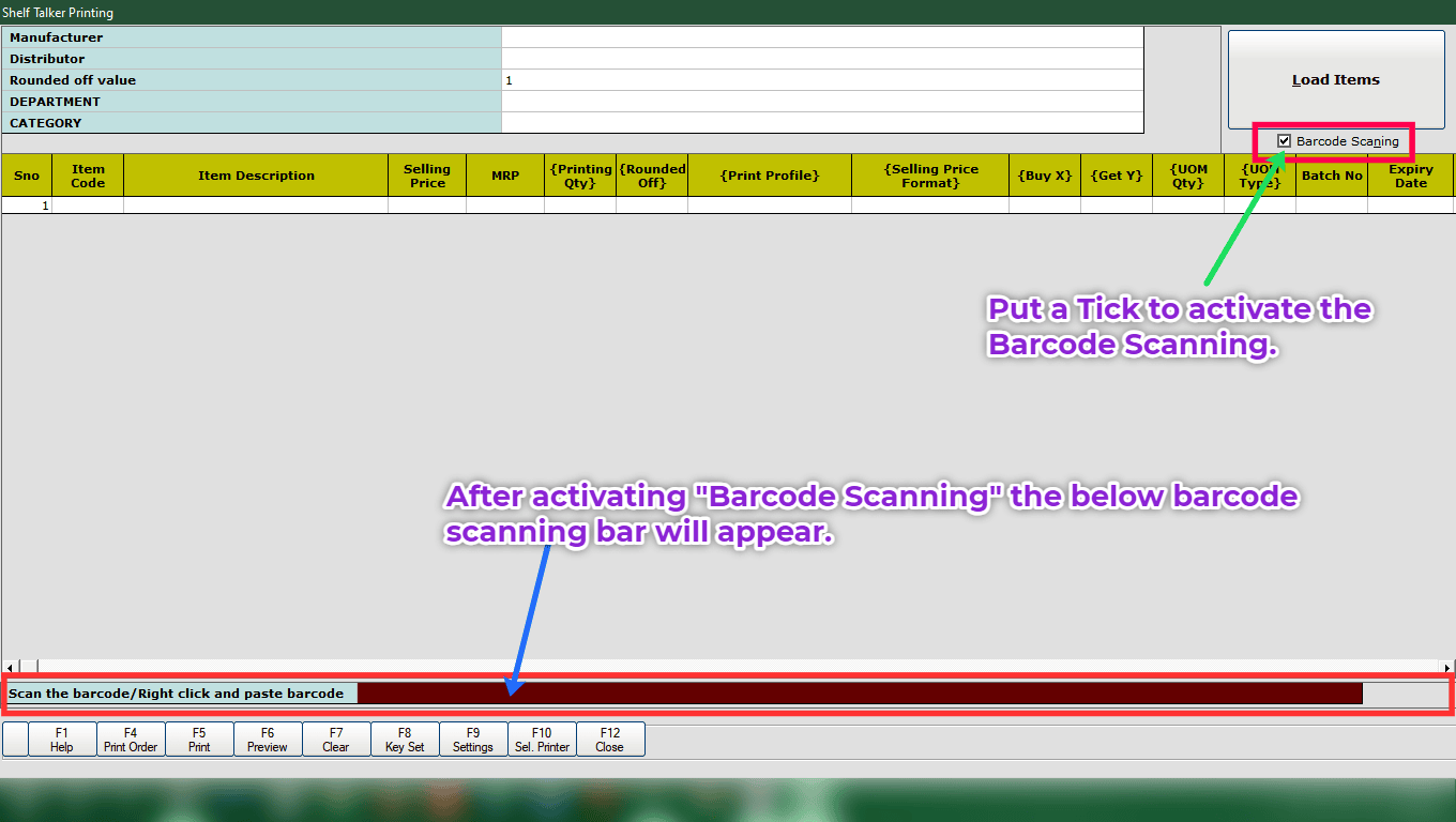 Once enabled, the barcode scanning bar will be activated for quick item input.