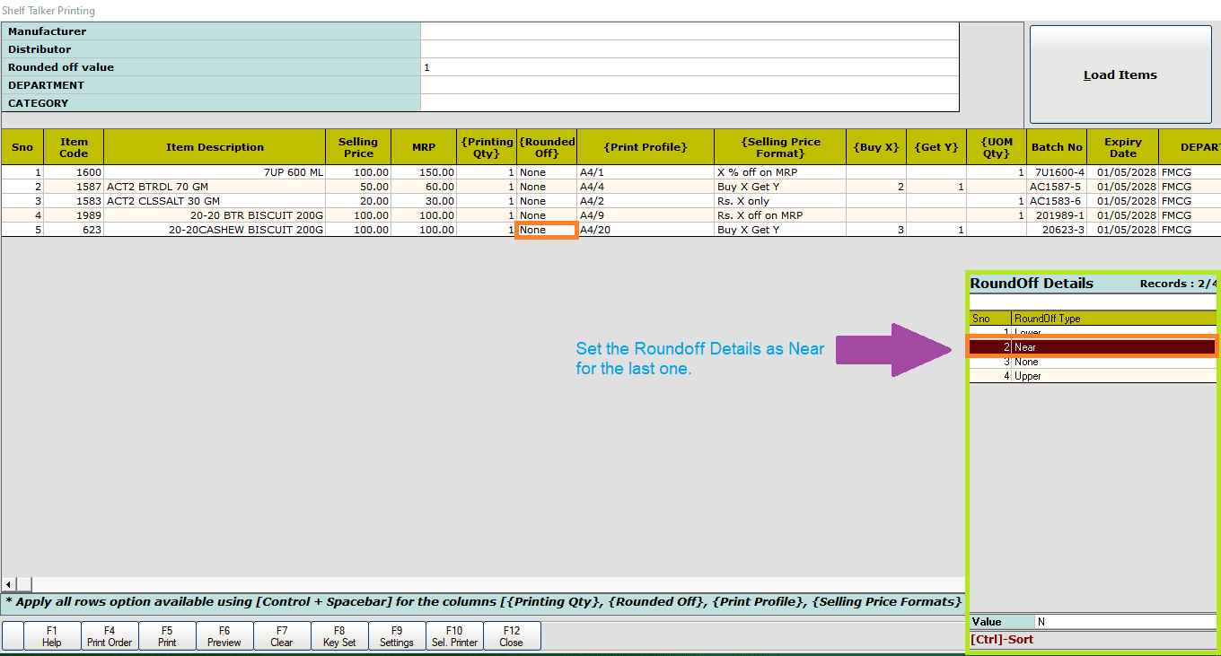 Load all items, enable the Round Off option, then press Enter and select “Near” from the list.