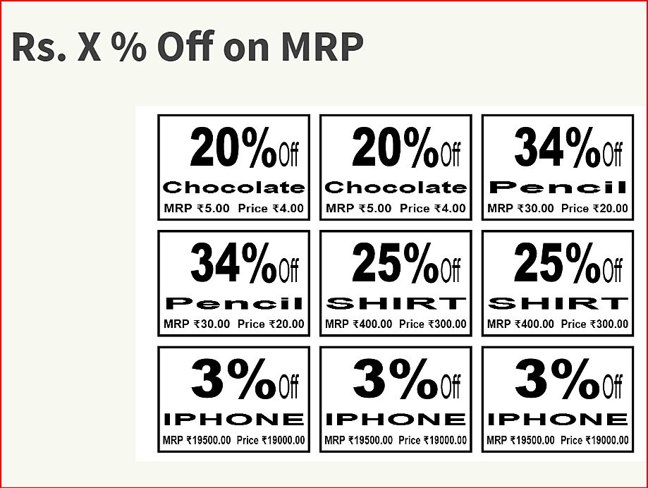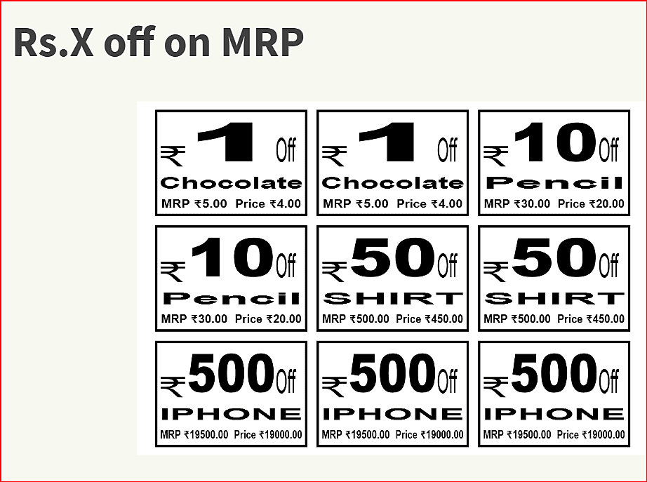 Rs. X Off on MRP (Printed as: Rs. X Off)