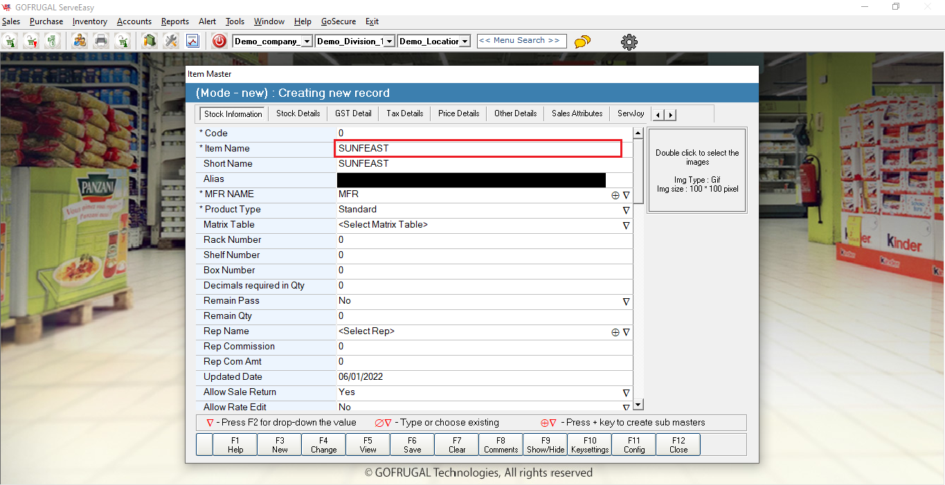 Step 7: You have created main categories and subcategories. Now enter the item in Item Master (Inventory --> Master--> Item Master) and map it with the categories.
