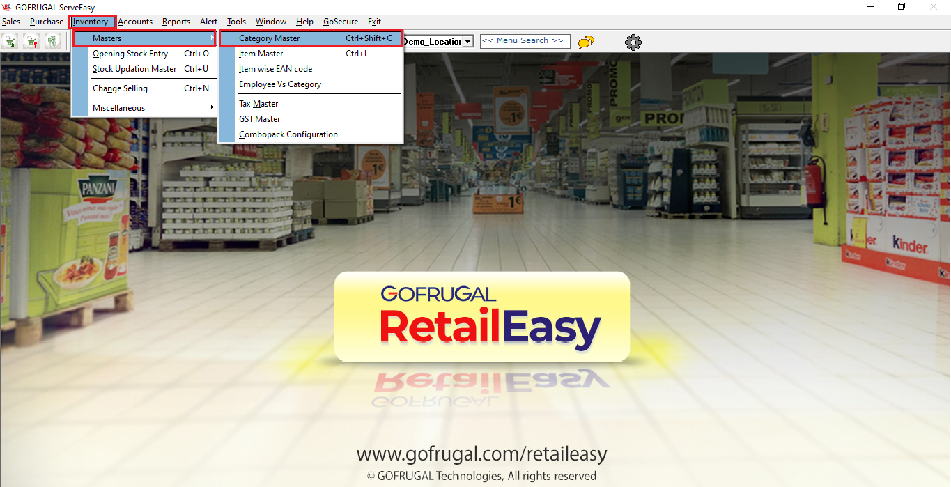 Step 3: Now, the main category has been created. The Next step is to create the subcategories under the main category. For creating a subcategory, go to Inventory--> Masters --> Category Master. The "Category Master" window will appear.