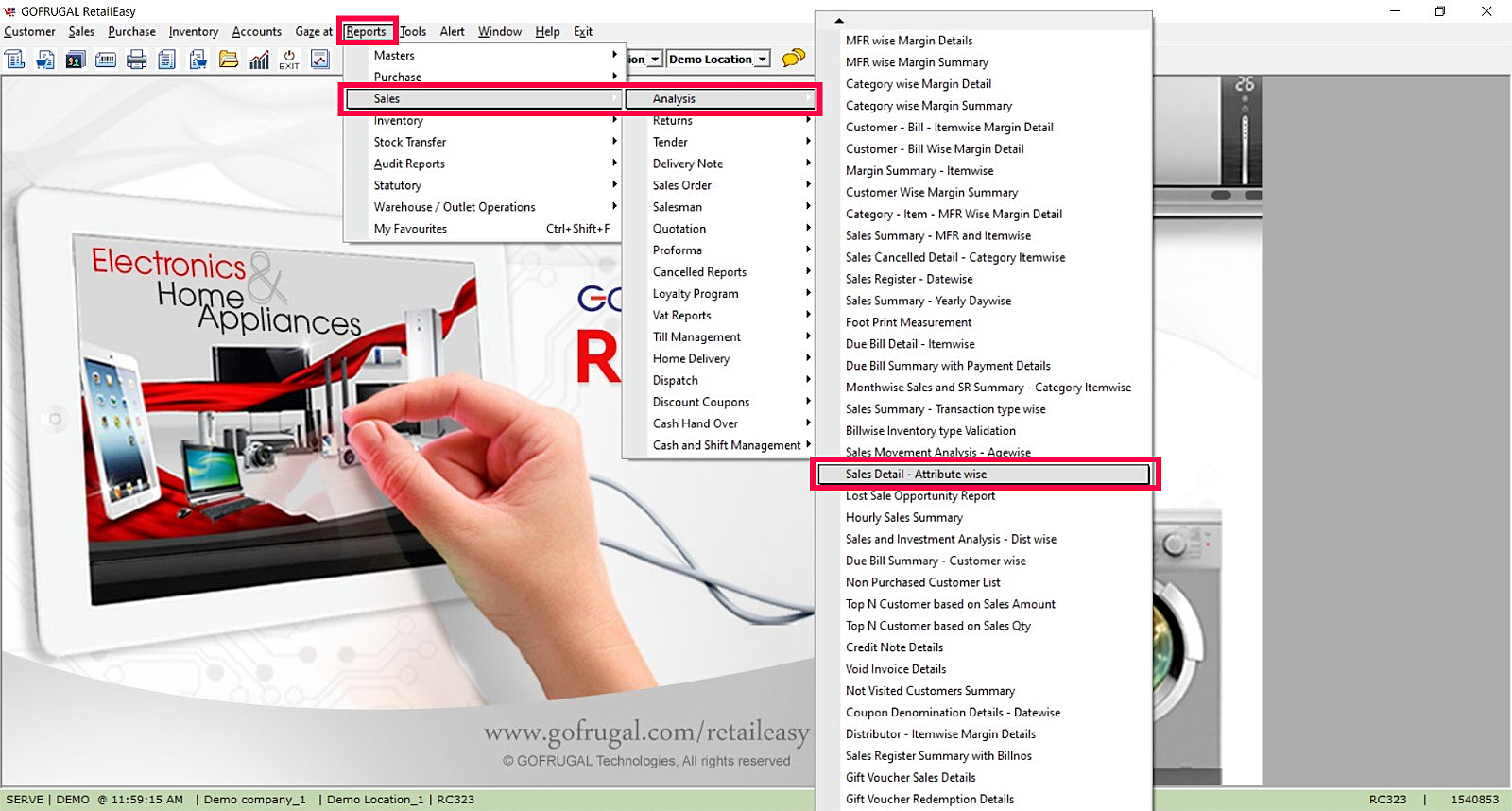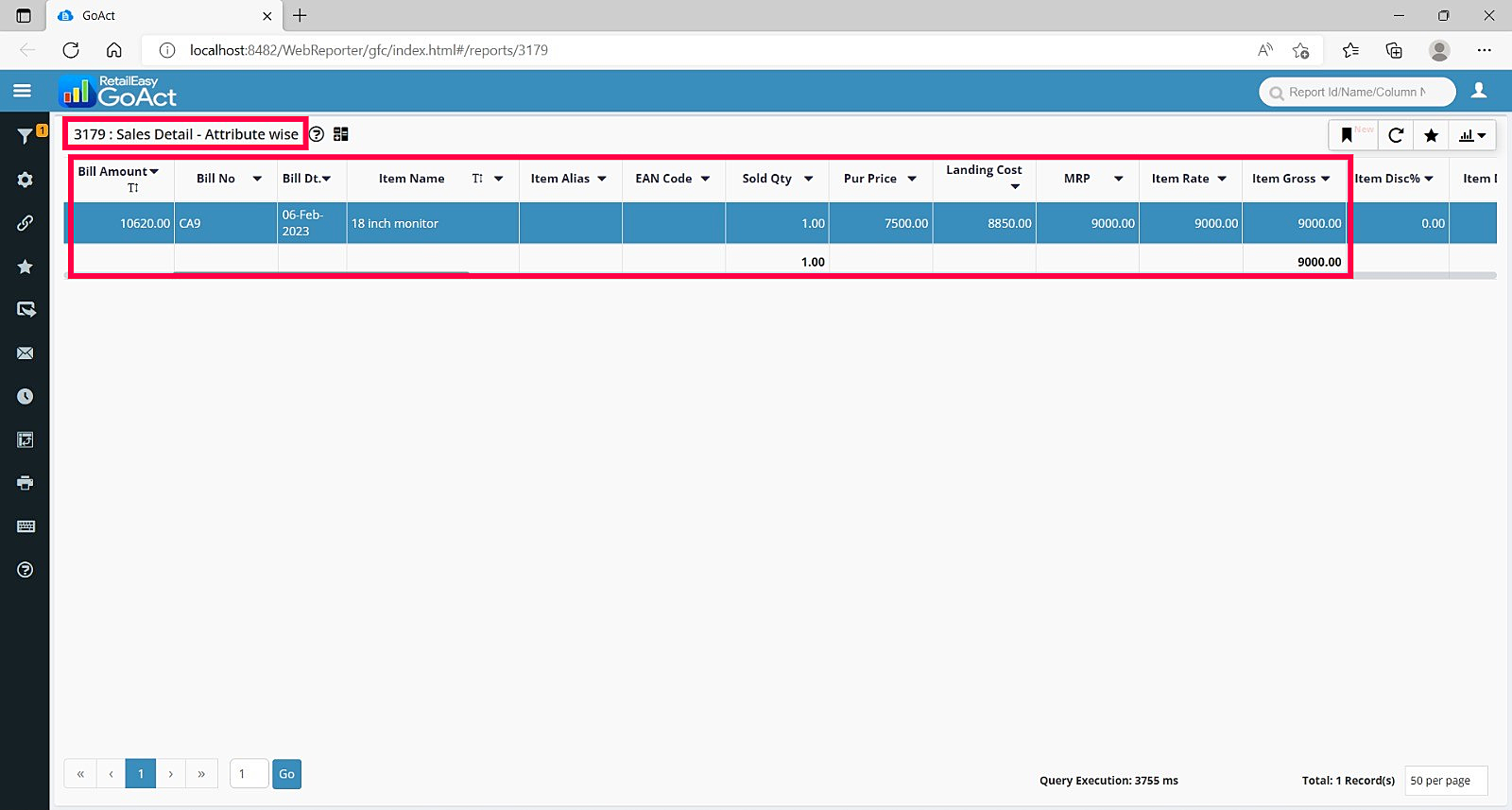 Step 2: Sales Detail - Attribute wise report will appear. Check & verify the details of Item sold here.
