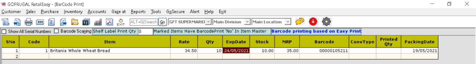 Limitation: As of now, packing date is supported only in EasyPrint Barcode and not in PRN barcode.