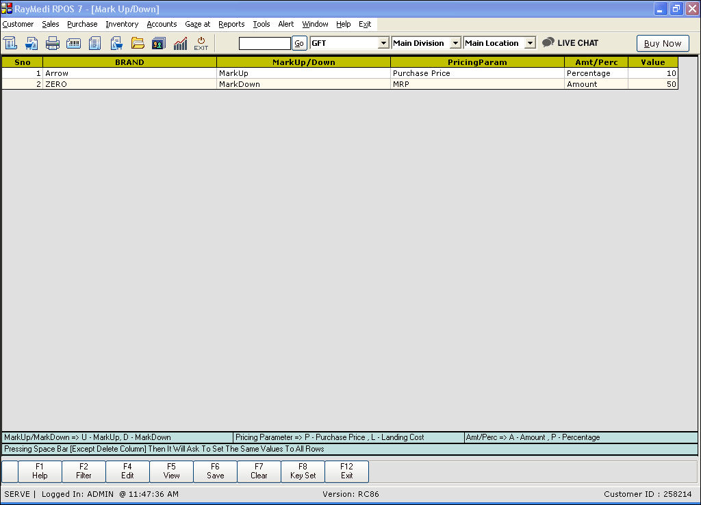3. Click Save or press F6 to save the category-wise MarkUp/Down.