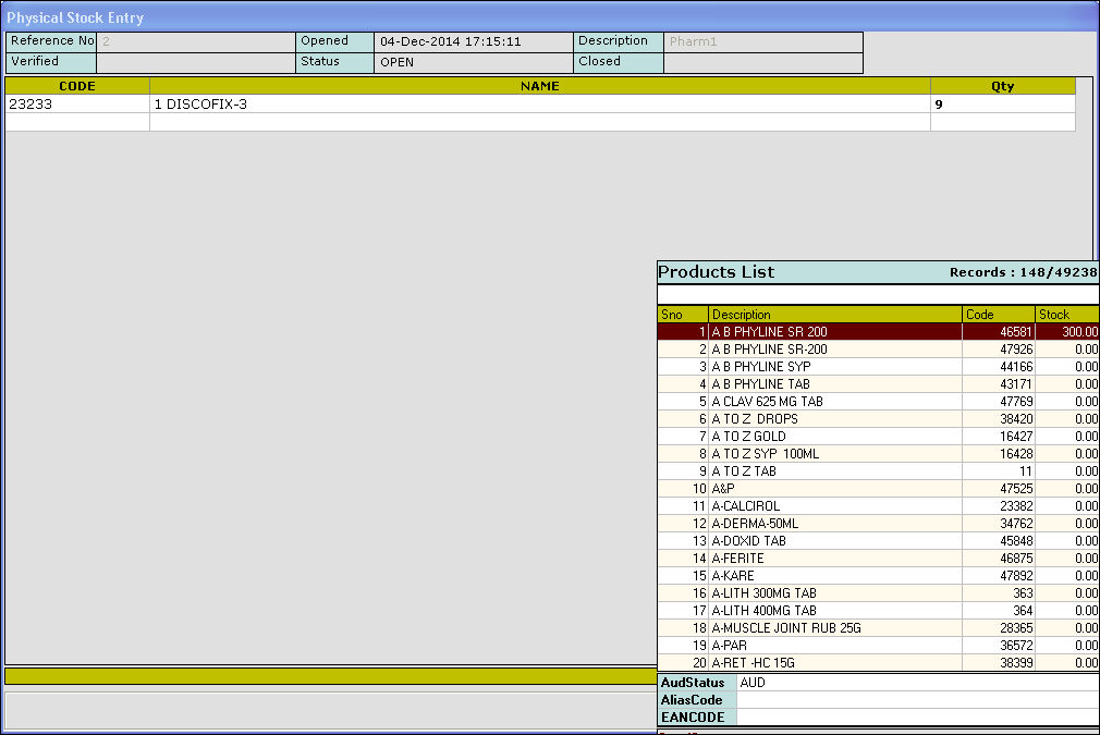 10. Click Add. The quantity is added in the Qty column of the Physical stock Entry screen.