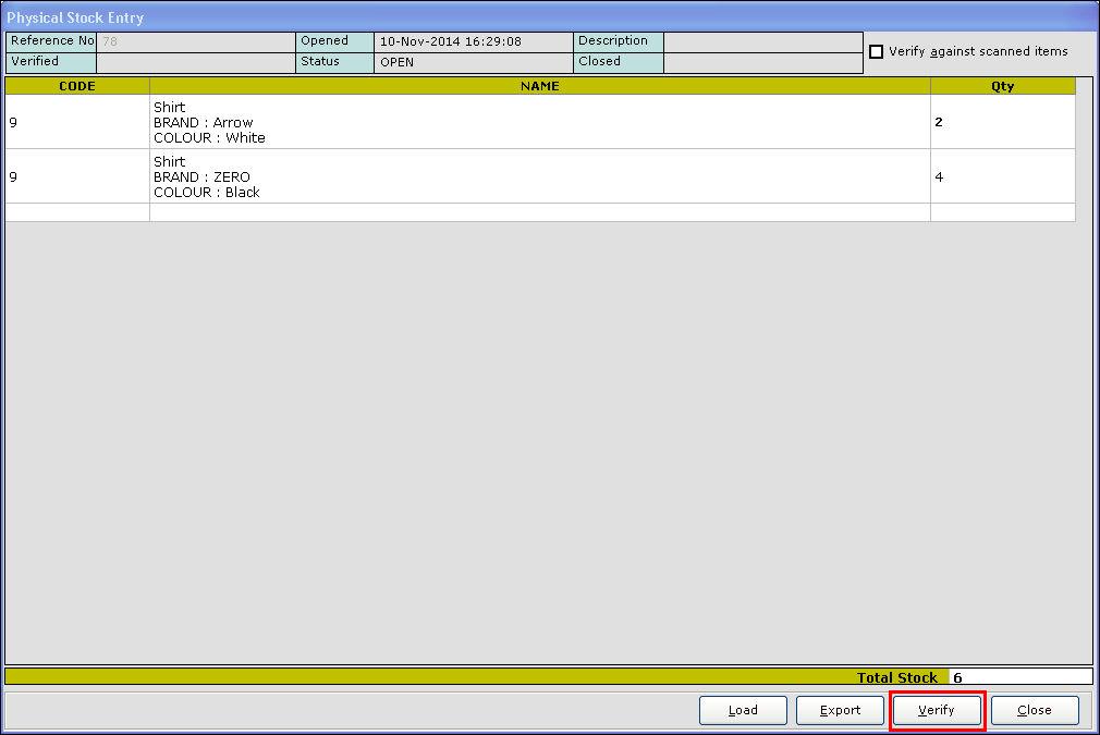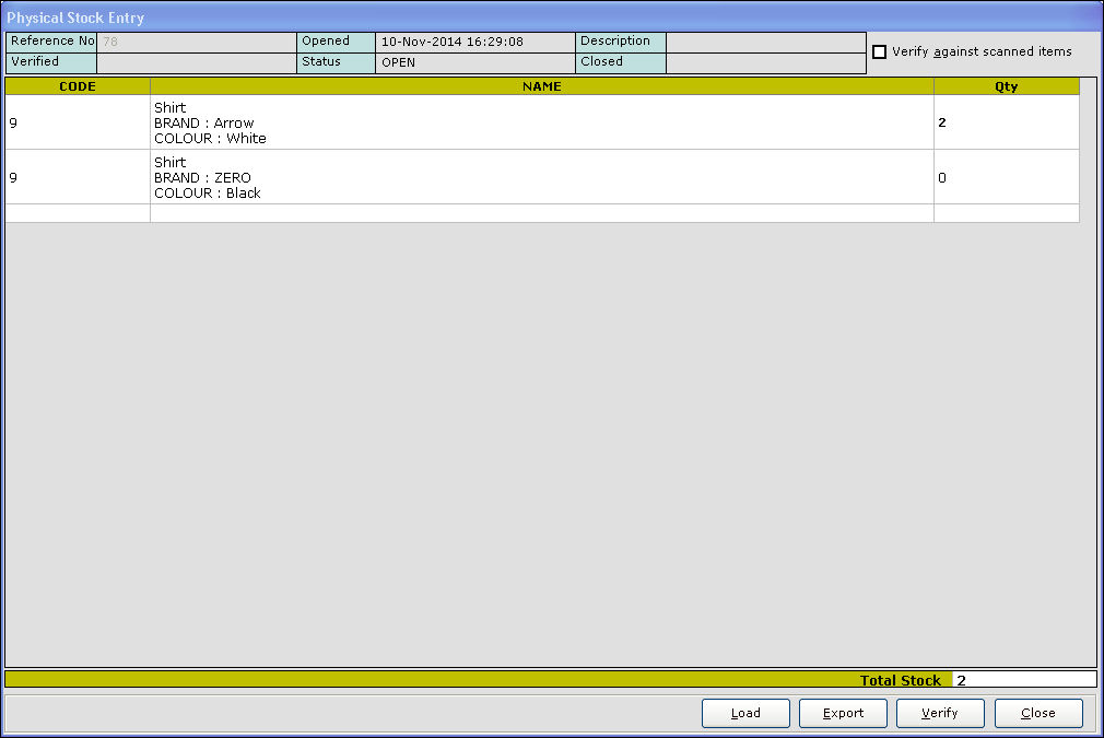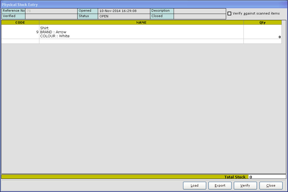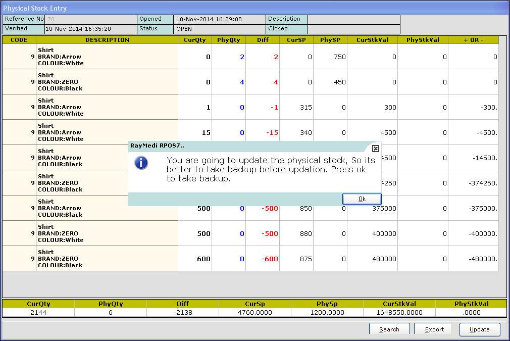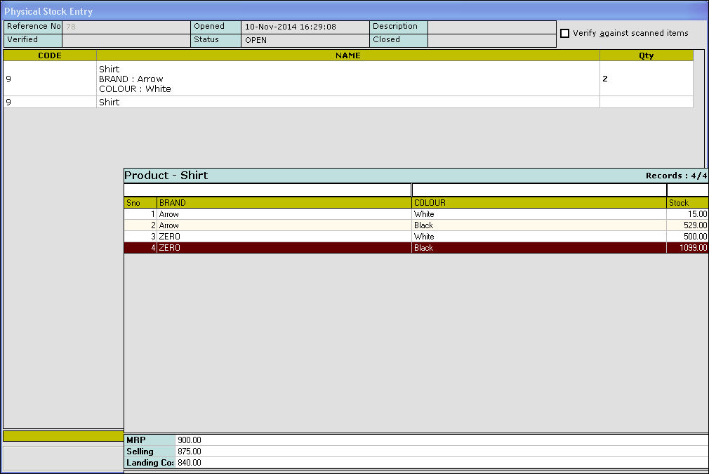 15. Press Esc key to exit. The value for the corresponding item is updated in the Physical Stock Entry screen.