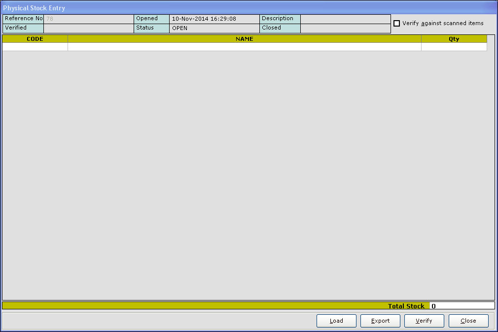 8. Click Open or press F4. The Physical stock entry screen is displayed.