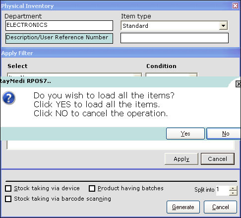Click Cancel. A confirmation message to load all the items is displayed. Click Yes to load all the items (or) Click No to cancel the operation.