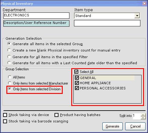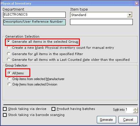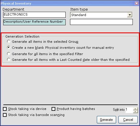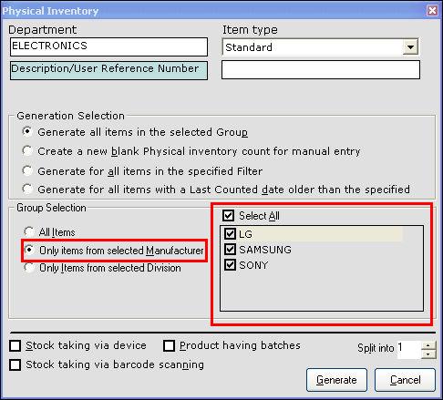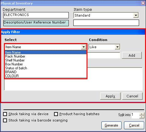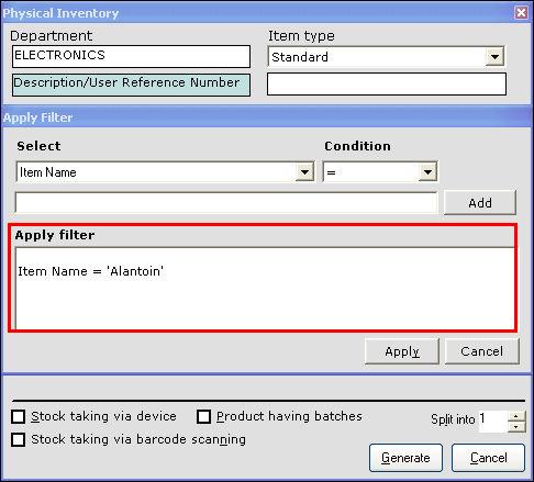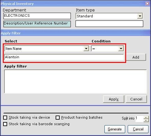 Use this option to filter certain items based on their attributes and then load them into the physical entry screen.