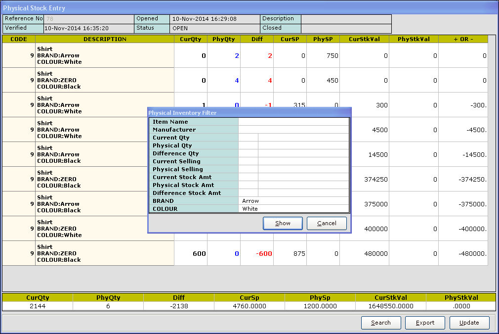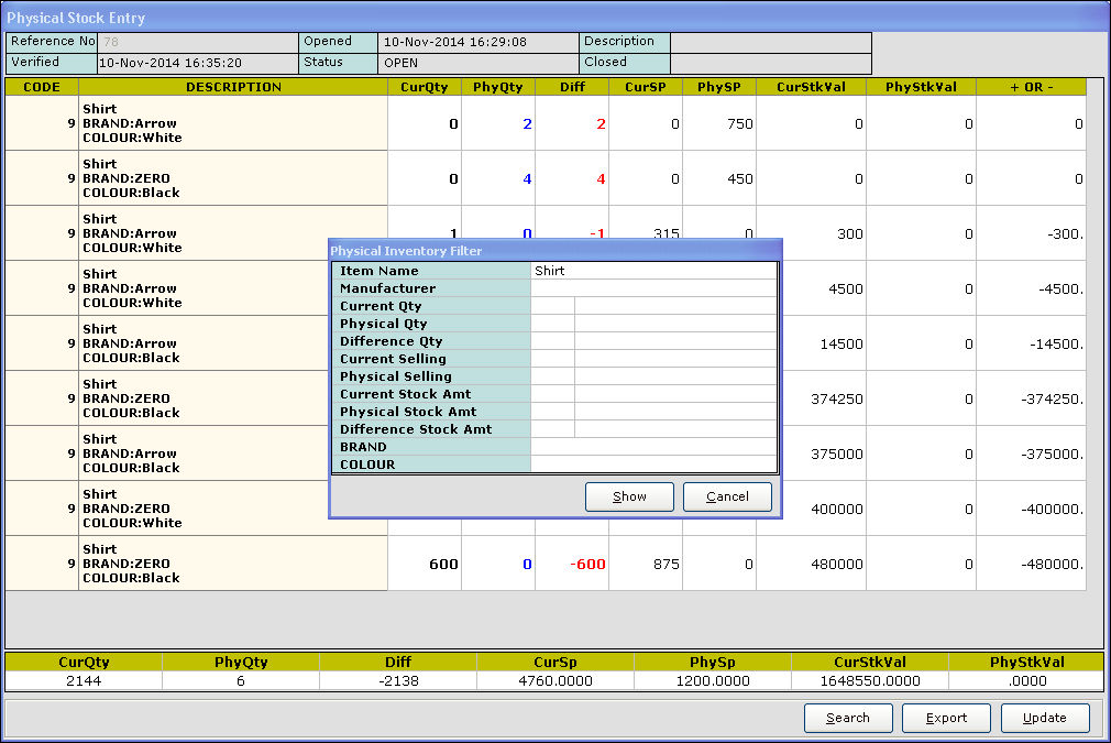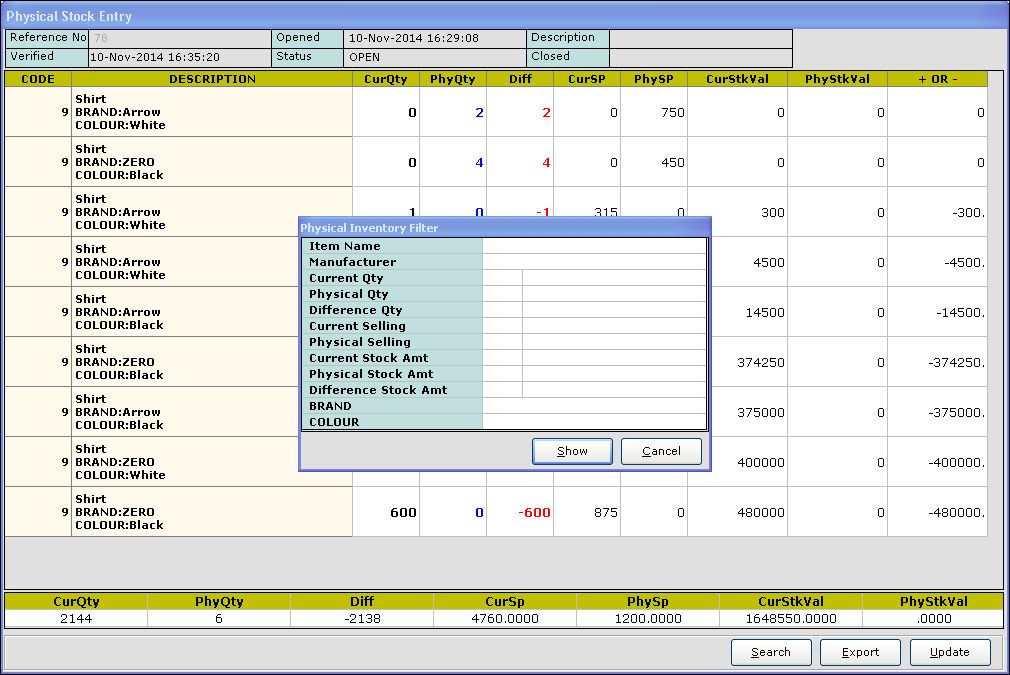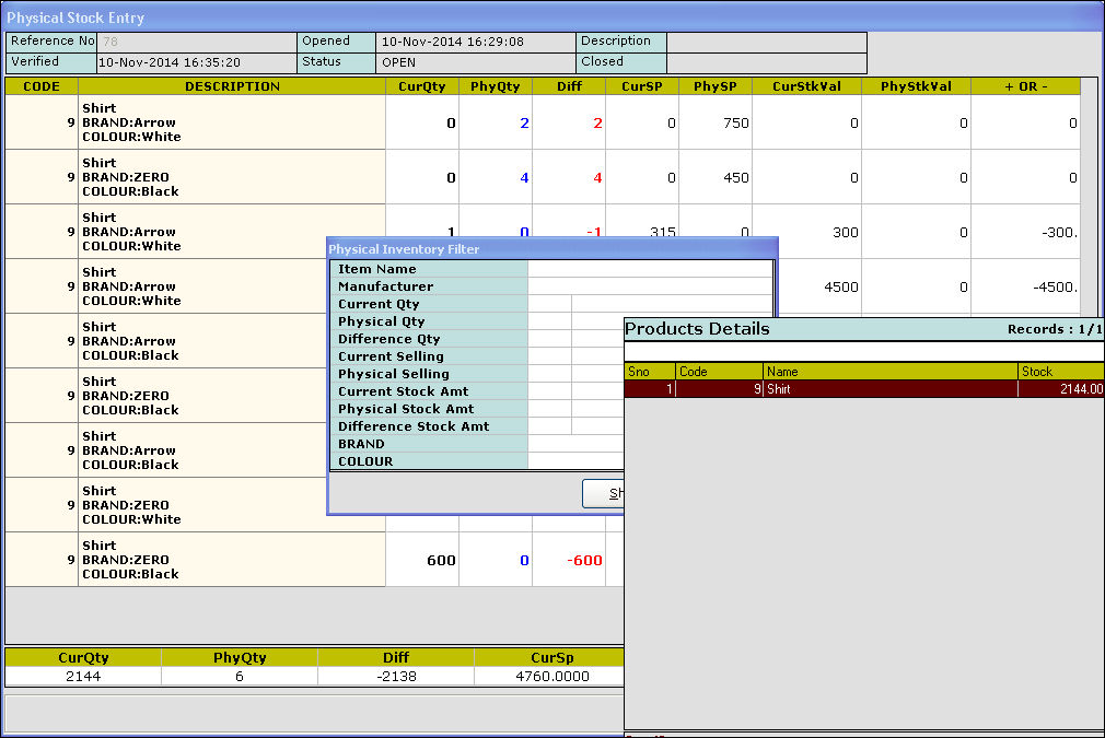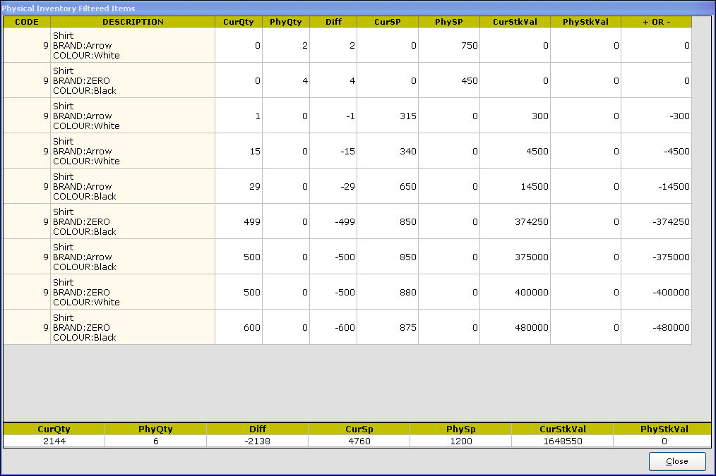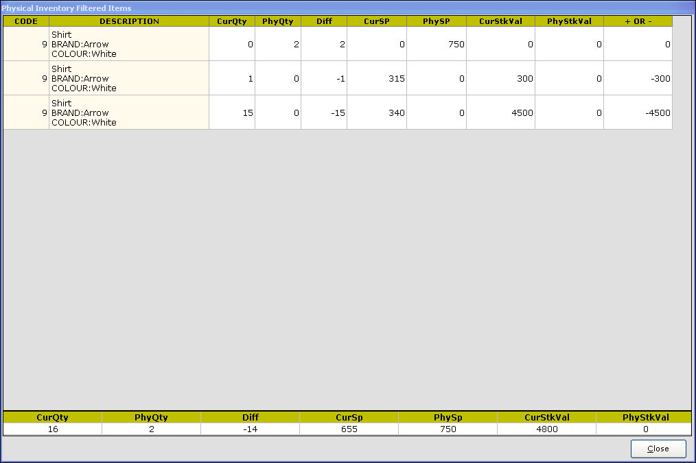 Difference Qty