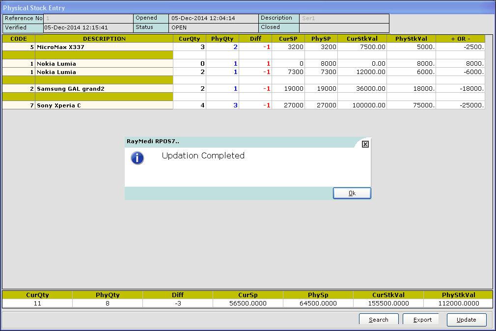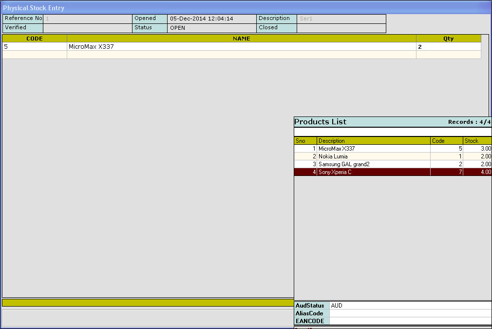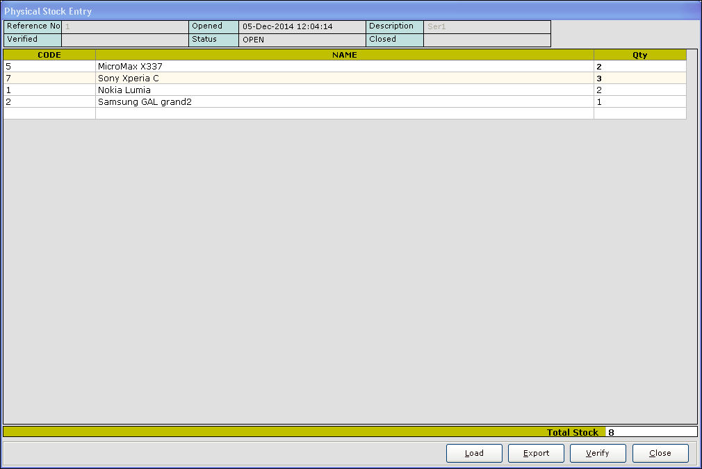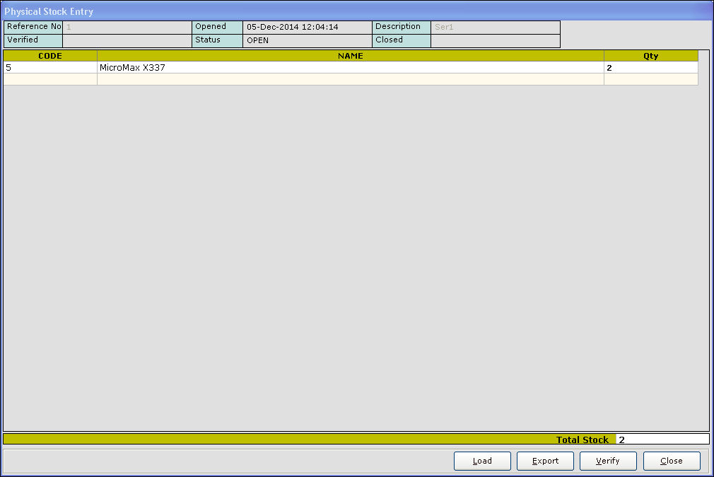 The updated quantity is added in the physical stock entry screen. Similarly, load more items.