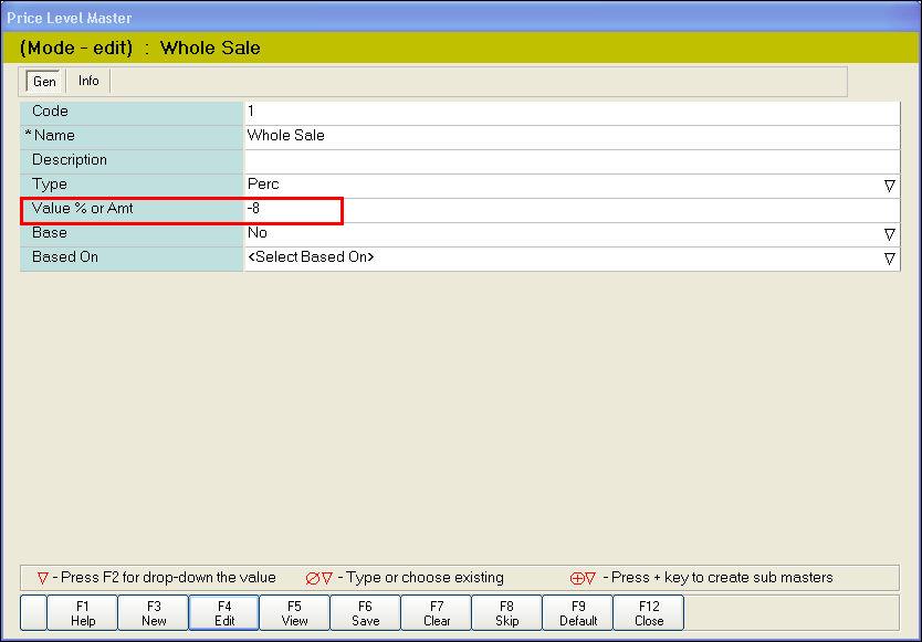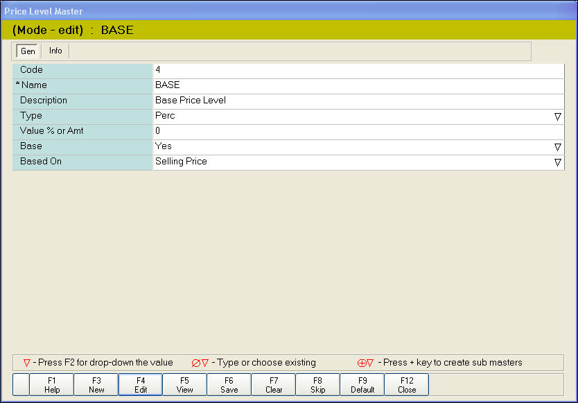 3. In the Price level type field, press F2 key. Select the option Apply from Price level Master from the drop-down list.