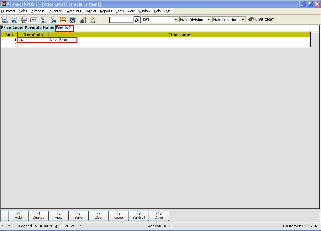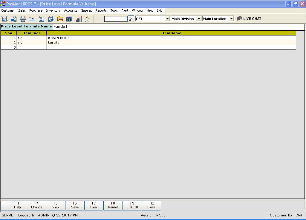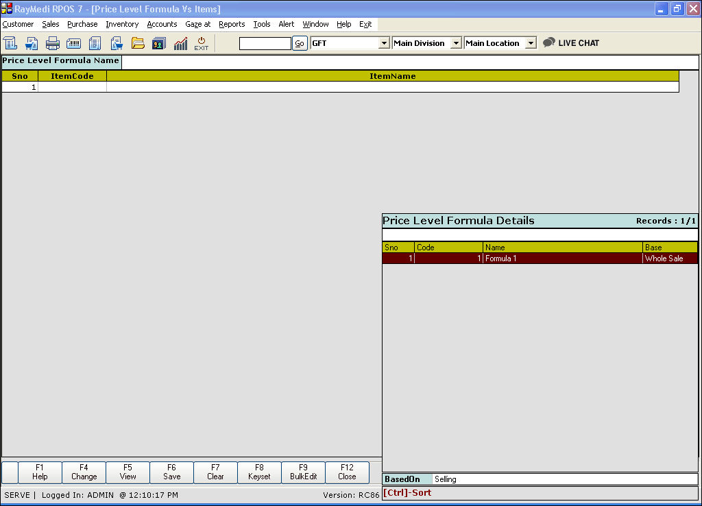 6. Click Save or press F6 to save the Price Level Formula Vs Items.