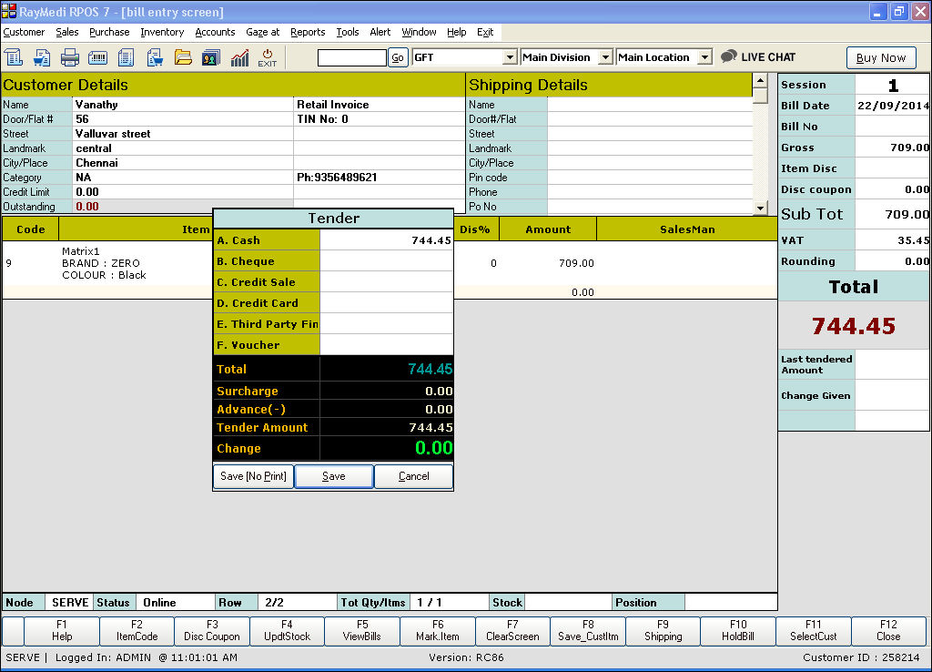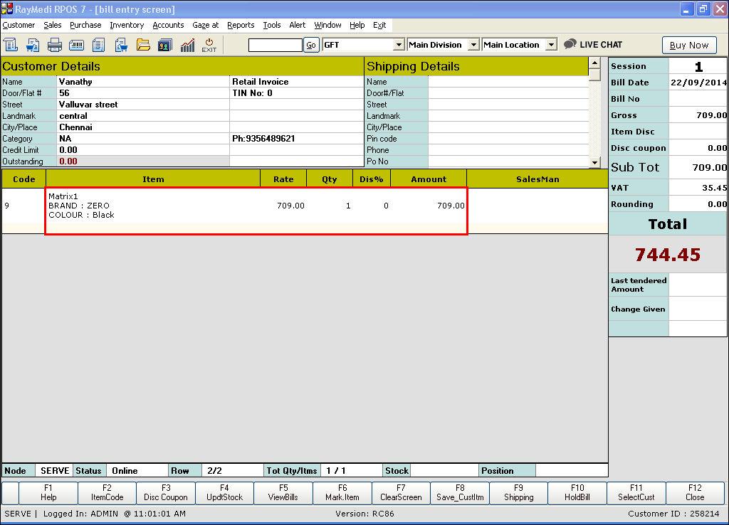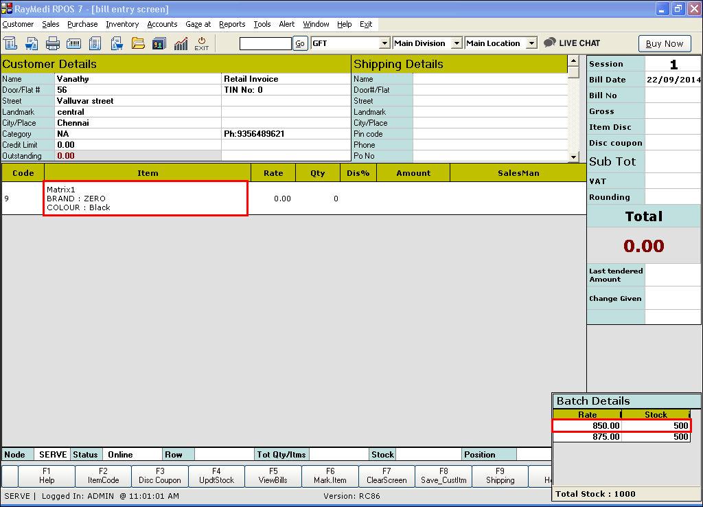The price level mapped to the customer is automatically applied while selecting the customer at the time of billing.Other features: