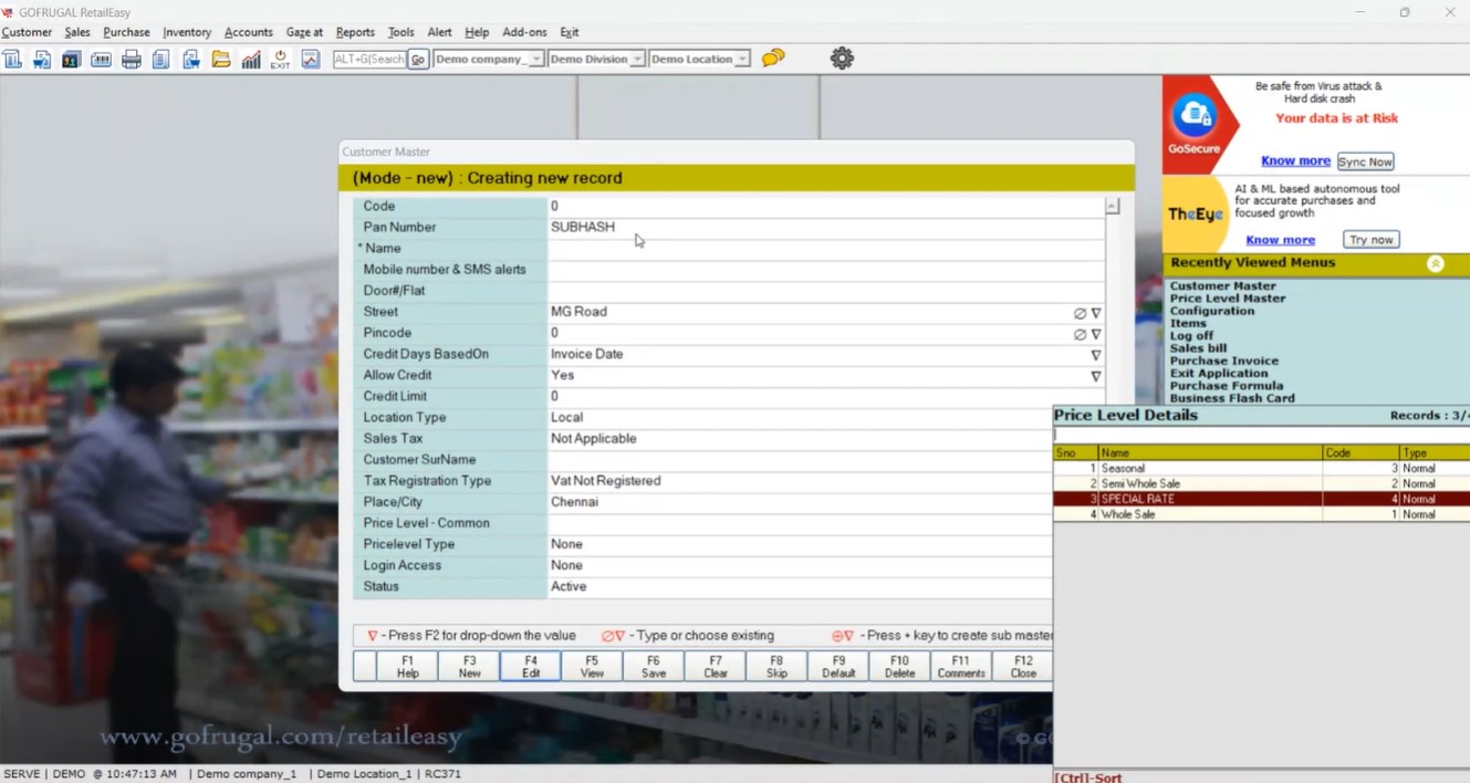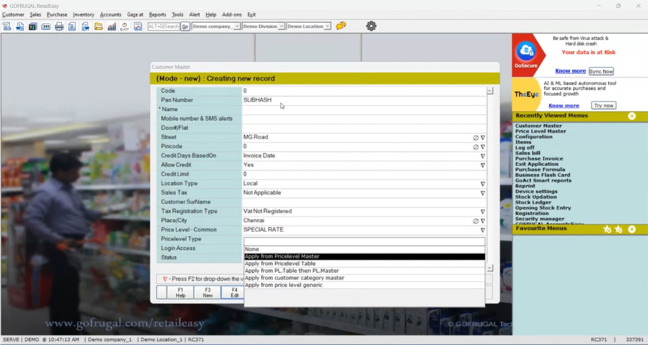 Step 12: In the Customer Master, select the Price Level type as Apply from Price Level Master. Click Save.